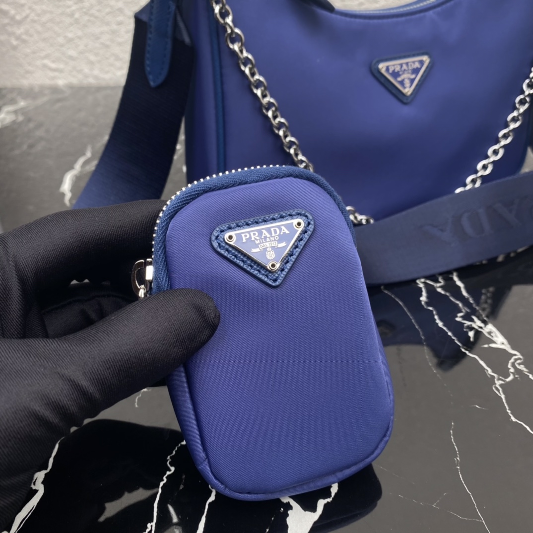 πPrada’s new nylon Hobo handbag/underarm bag ππ The hobo that the internet celebrity sister group is crazy about planting grass and becoming popular in the fashion circle has released a new style! ππ The design of this Hobo bag is great ππOne bag with three uses , What I love most is that there is a small pendant (small bag) hanging on the shoulder strap, and you can also hang other bags and trousers as accessories to echo it Size: Length 22X Height 12x Bottom 6cm