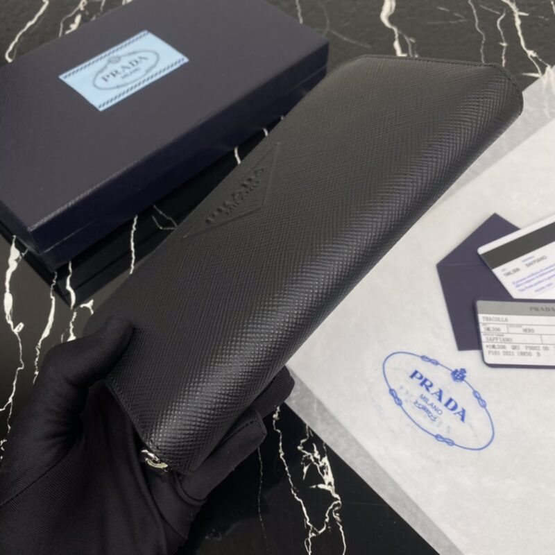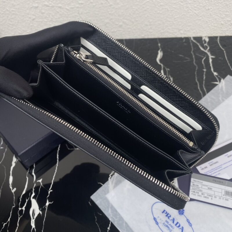πNew Zipper Walletππ This saffiano leather wallet has a simple design and a distinctive style. Body features twelve card slots, three bill compartments, and an interior coin compartment. A signature tonal embossed triangle logo adds style to the brand. Babies who like it hurry up ππSize: length 20cm*height 10.3cmππππππ