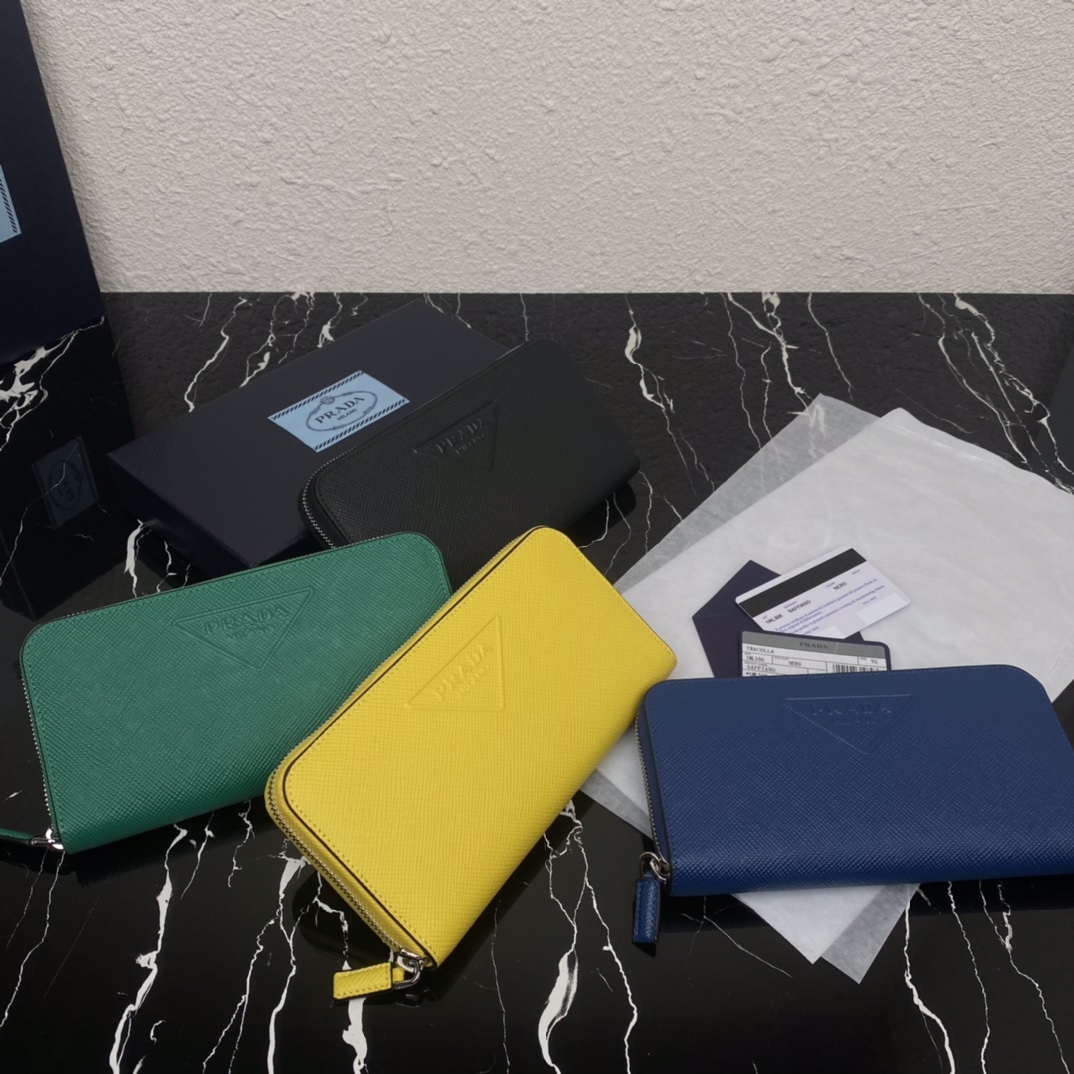 πNew Zipper Walletππ This saffiano leather wallet has a simple design and a distinctive style. Body features twelve card slots, three bill compartments, and an interior coin compartment. A signature tonal embossed triangle logo adds style to the brand. Babies who like it hurry up ππSize: length 20cm*height 10.3cmππππππ