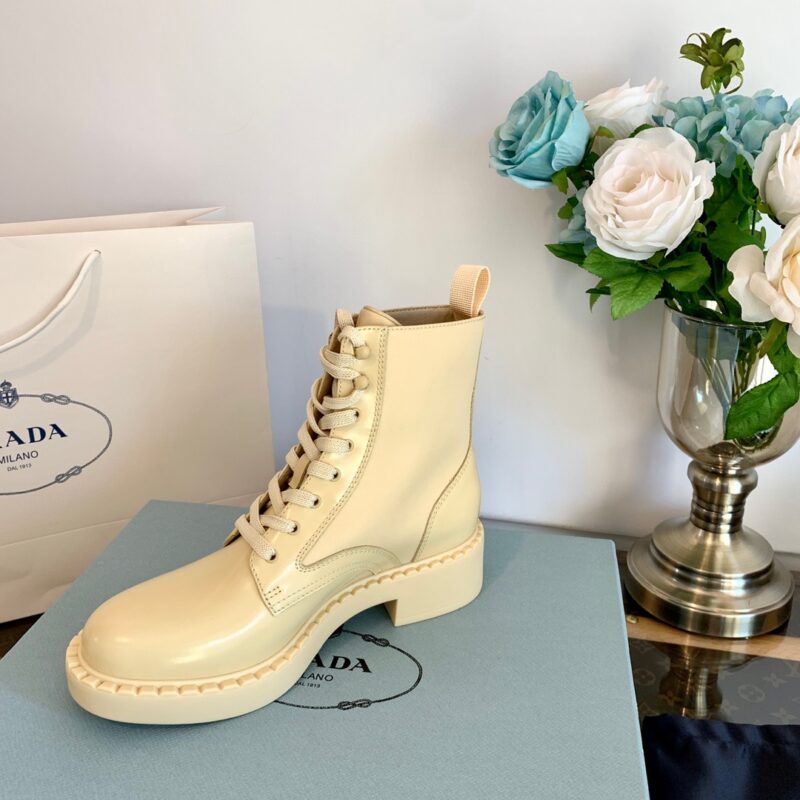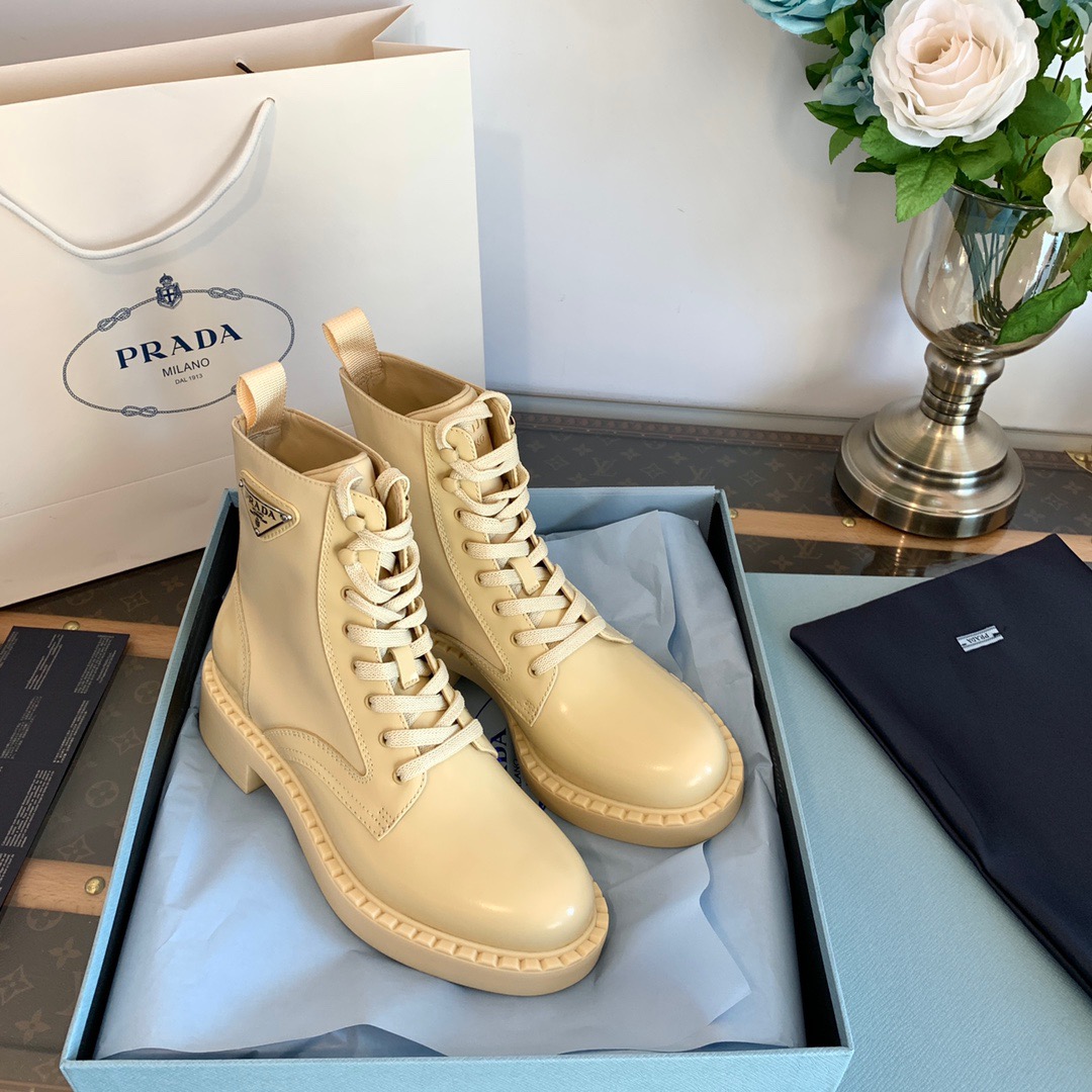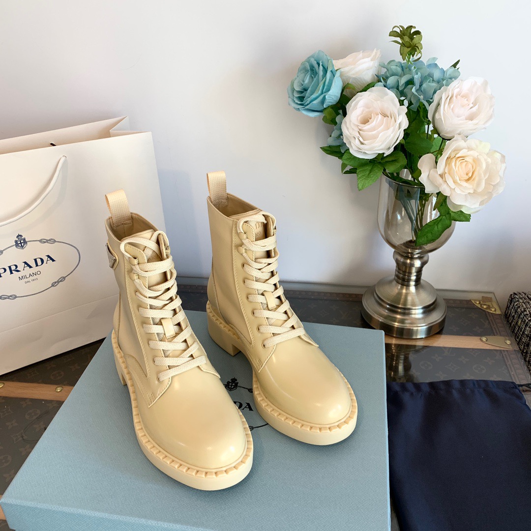 Prada nylon stitching lace-up motorcycle boots️ Simple and elegant. Nylon surface is comfortable and breathable, durable and timeless. Super handsome and versatile, 3.5 cm thick bottom. Upper feet feel light. Taller and thinner. Upper: Beads, Polyester Cotton Inner: Mixed-breed sheep Foot: Silk Calfskin Outsole: TPU rubber foam outsole. Non-slip and wear-resistant. [Heel height: 3.5CM] 𝐒𝐈𝐙𝐄: 35, 36, 37, 38, 39