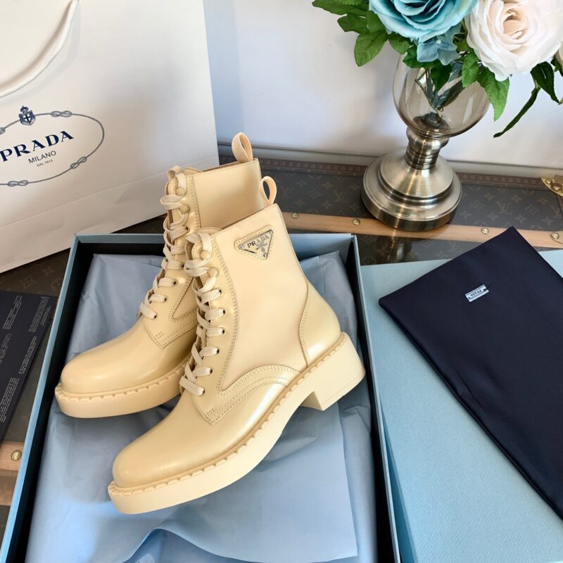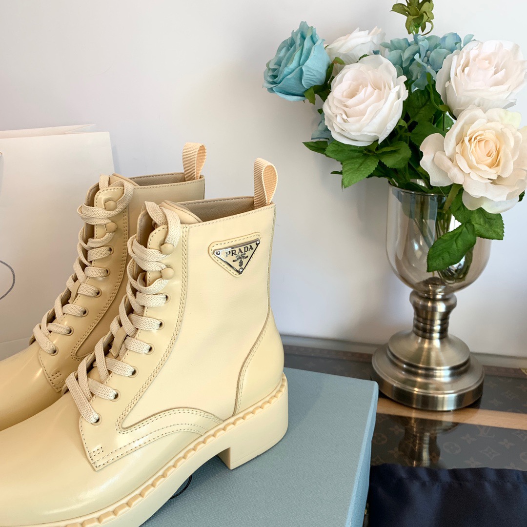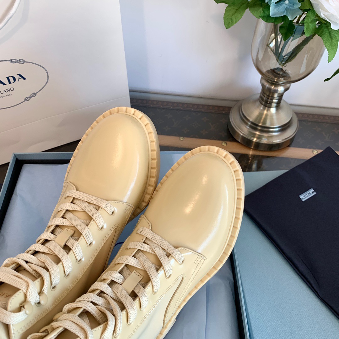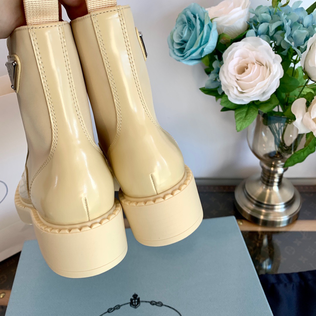 Prada nylon stitching lace-up motorcycle boots️ Simple and elegant. Nylon surface is comfortable and breathable, durable and timeless. Super handsome and versatile, 3.5 cm thick bottom. Upper feet feel light. Taller and thinner. Upper: Beads, Polyester Cotton Inner: Mixed-breed sheep Foot: Silk Calfskin Outsole: TPU rubber foam outsole. Non-slip and wear-resistant. [Heel height: 3.5CM] 𝐒𝐈𝐙𝐄: 35, 36, 37, 38, 39