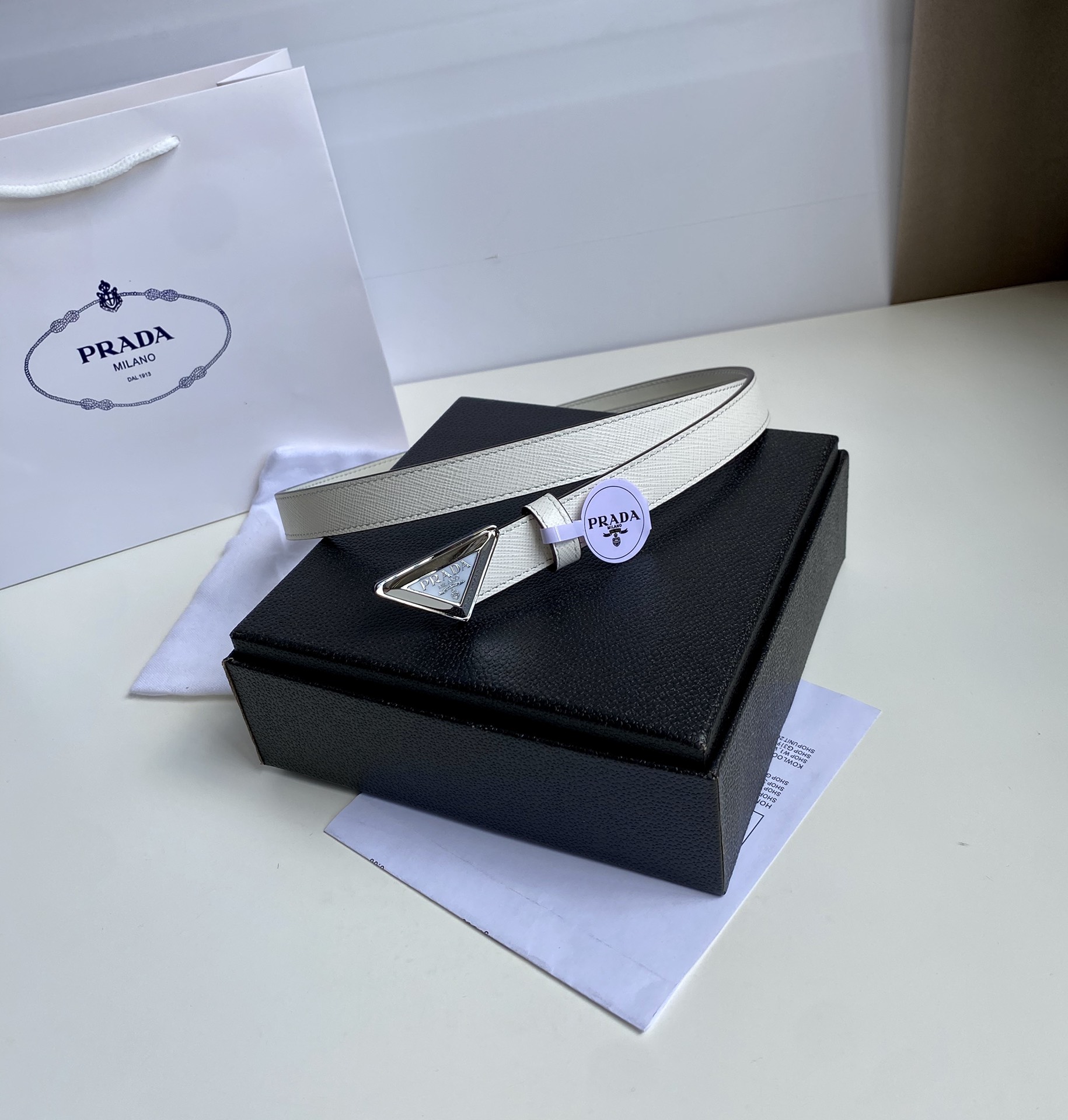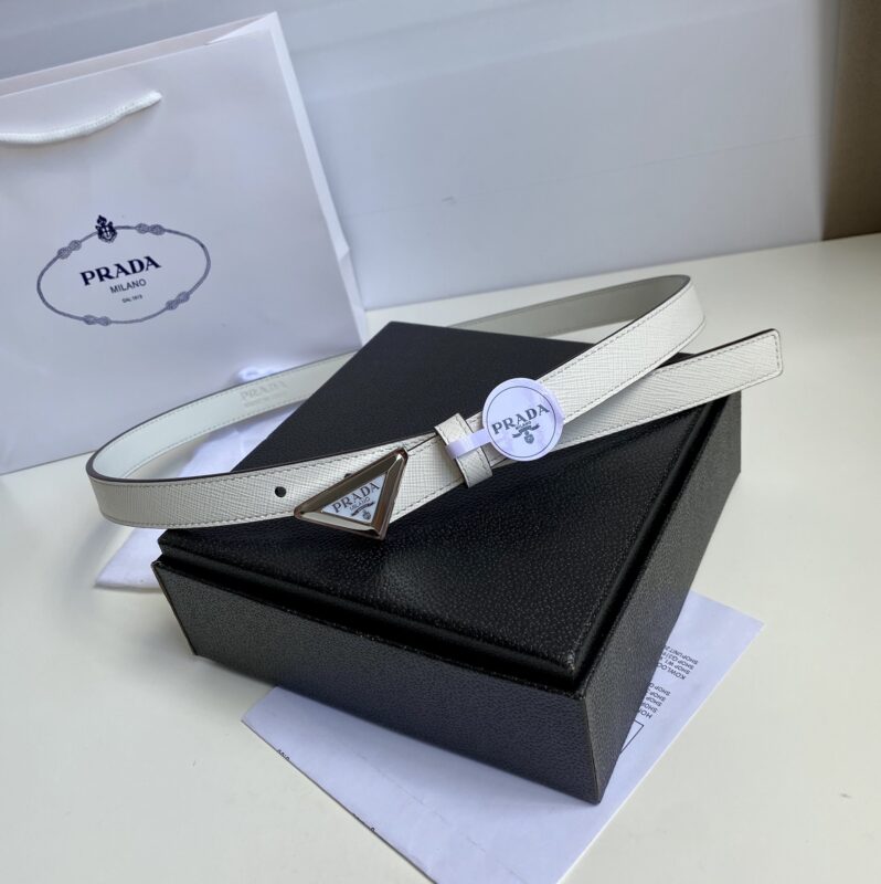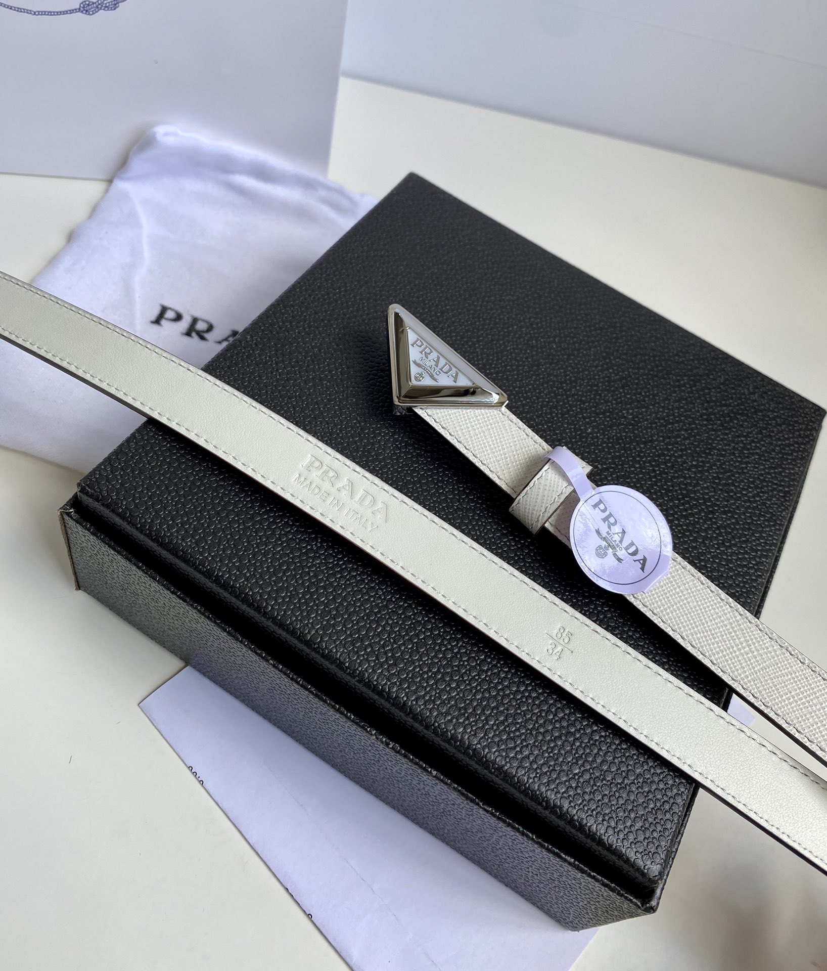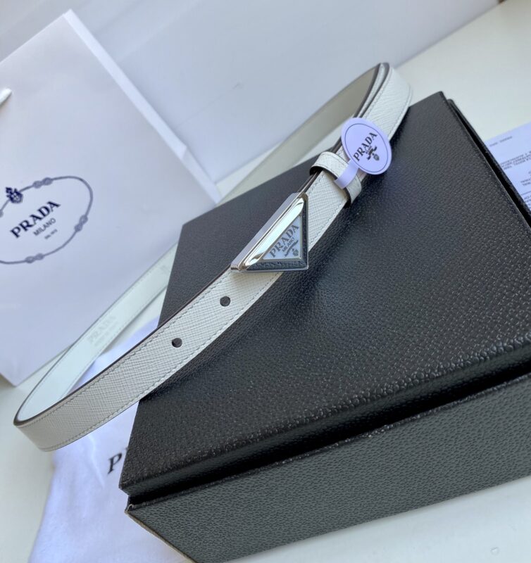 This belt has a simple yet sophisticated design. The metal buckle presents the iconic triangular logo outline to express the brand’s style. Saffiano leather features its waxed finish and cross-parallel shaded texture. Width: 2cm 24088970