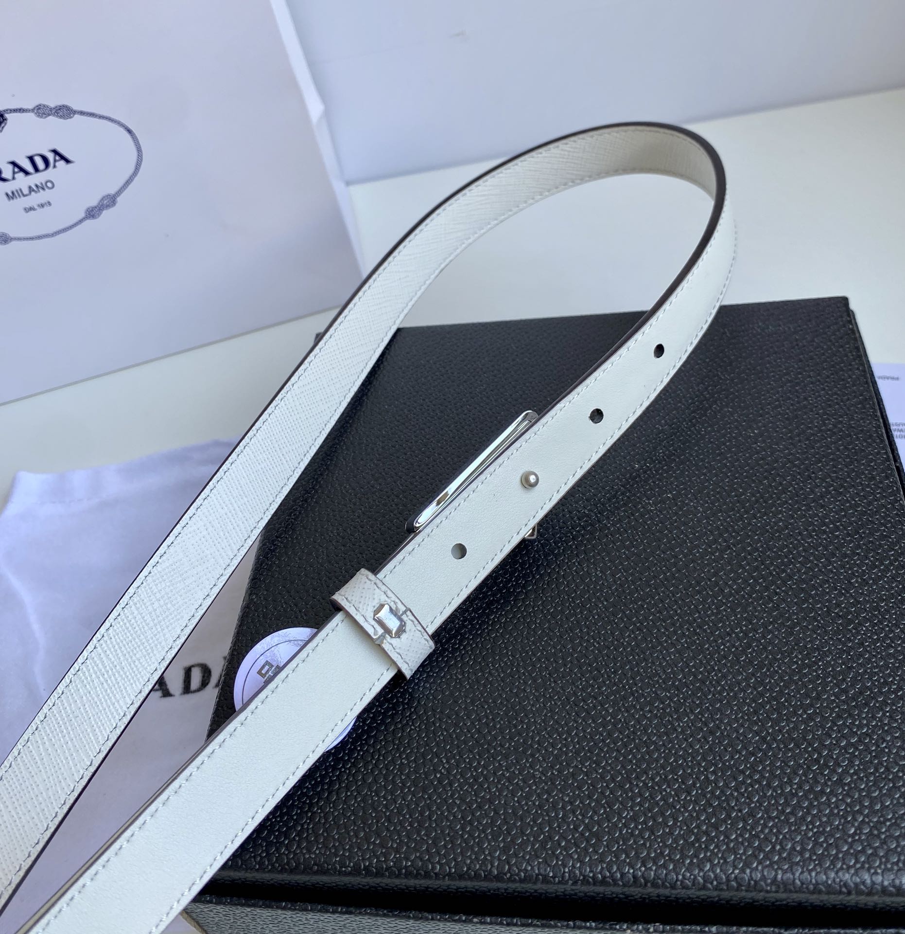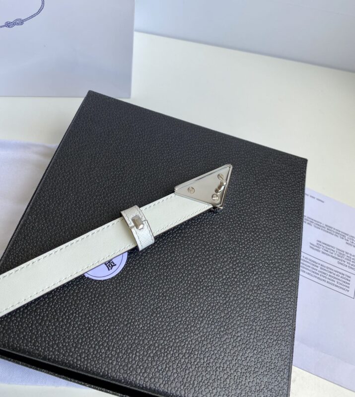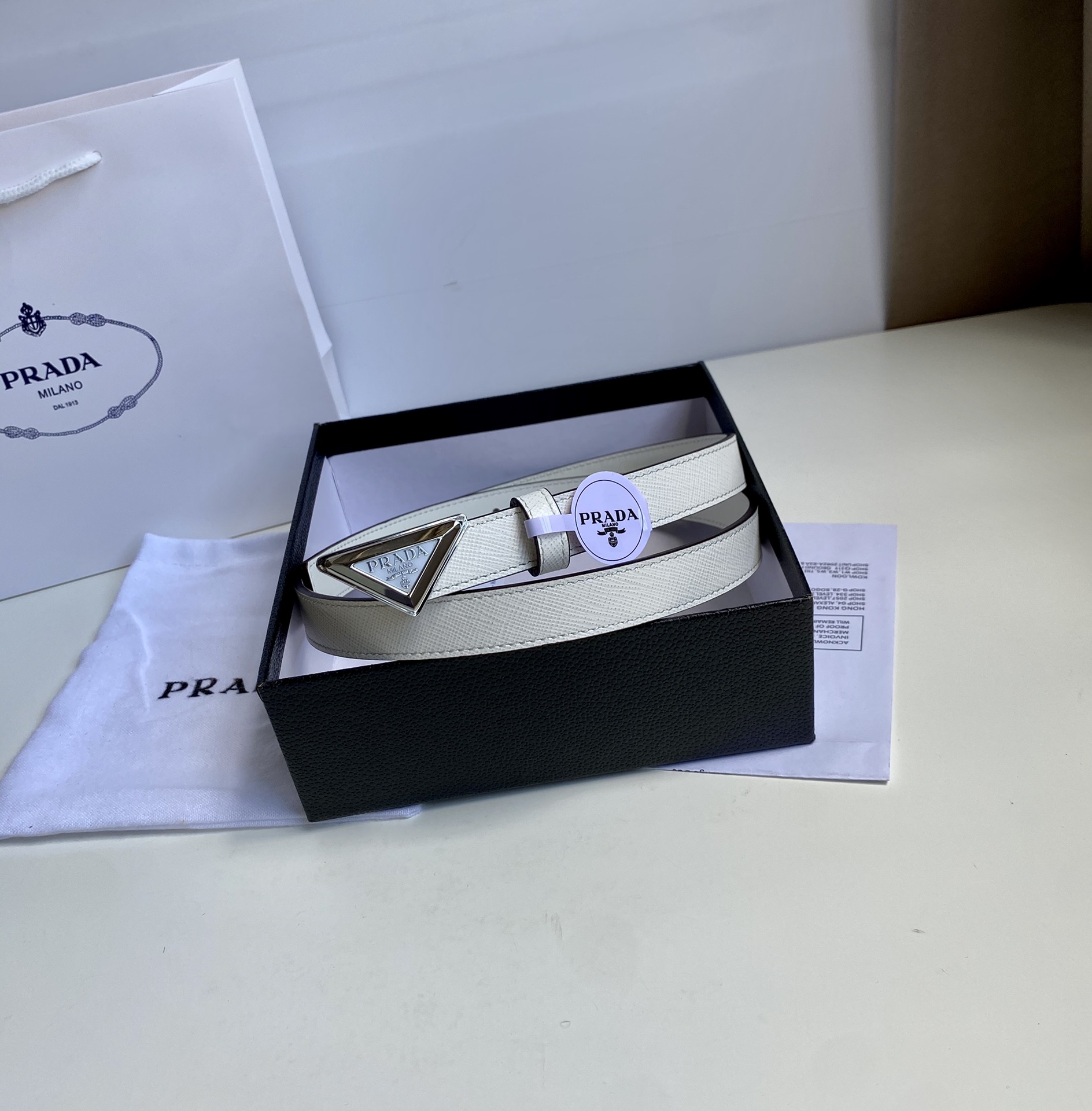 This belt has a simple yet sophisticated design. The metal buckle presents the iconic triangular logo outline to express the brand’s style. Saffiano leather features its waxed finish and cross-parallel shaded texture. Width: 2cm 24088970