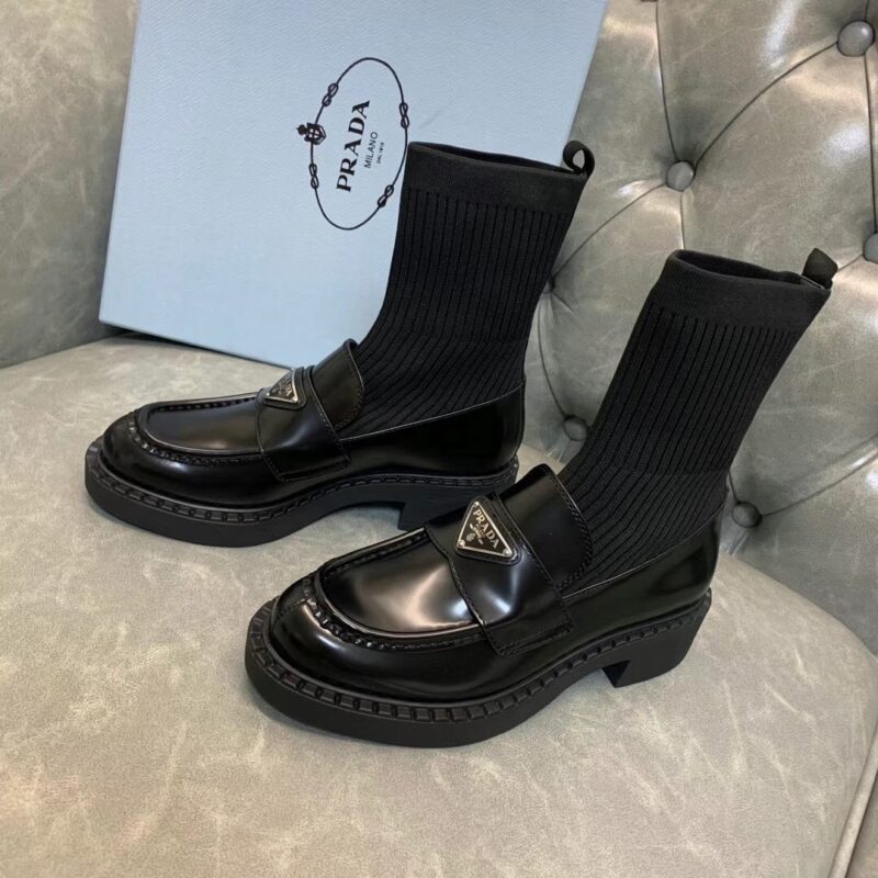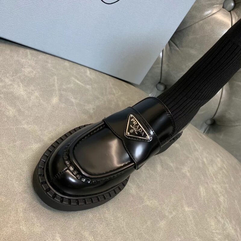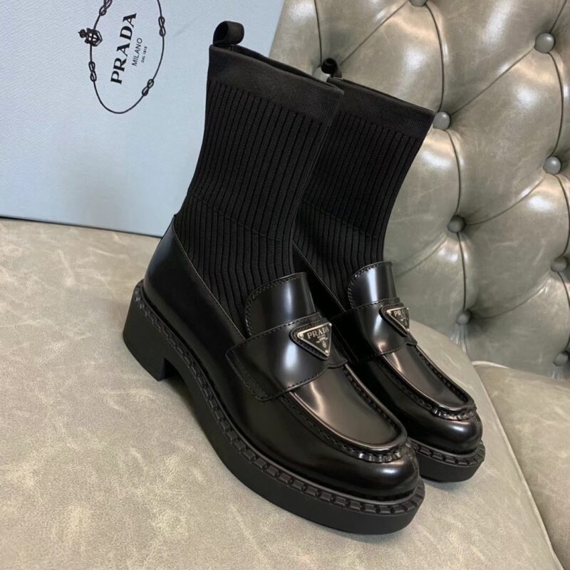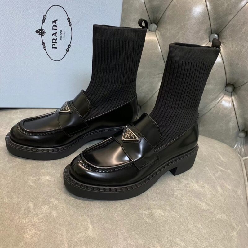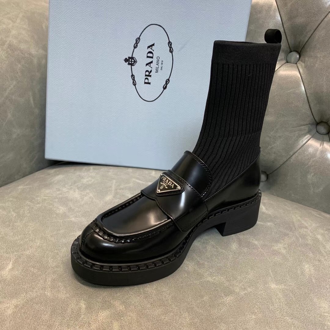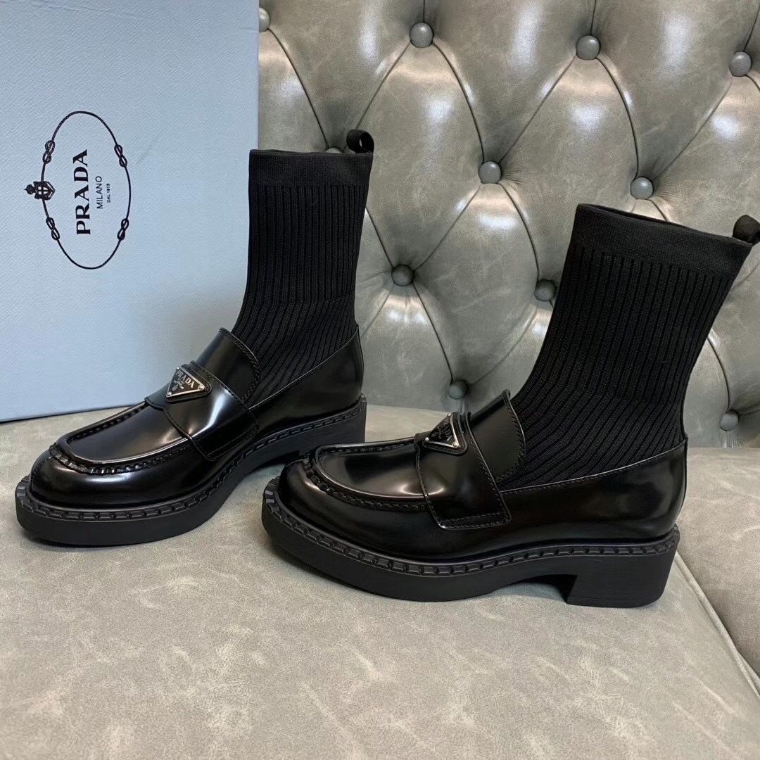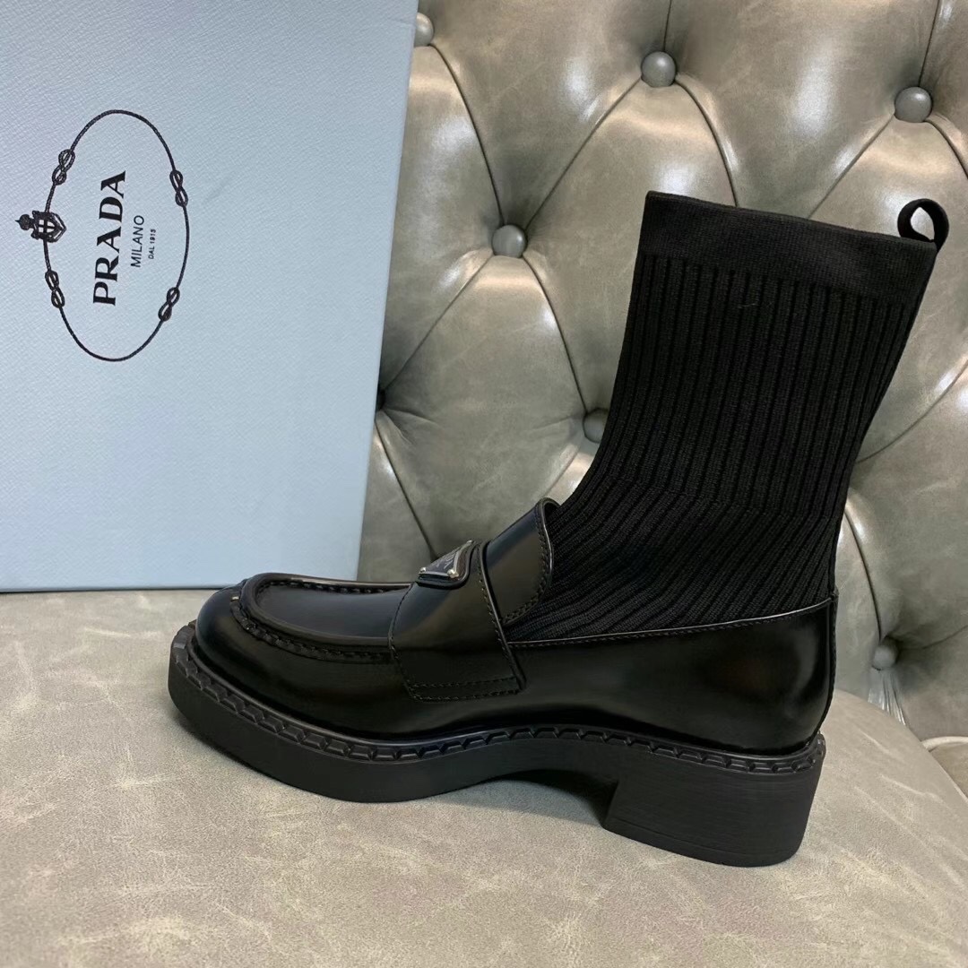 Prada 2021 early autumn triangle logo new socks and boots The upper feet are particularly thin legs. Imported open edge beaded cowhide, original flying woven elastic boots. Original open mold tpu outsole. Size: 35-39