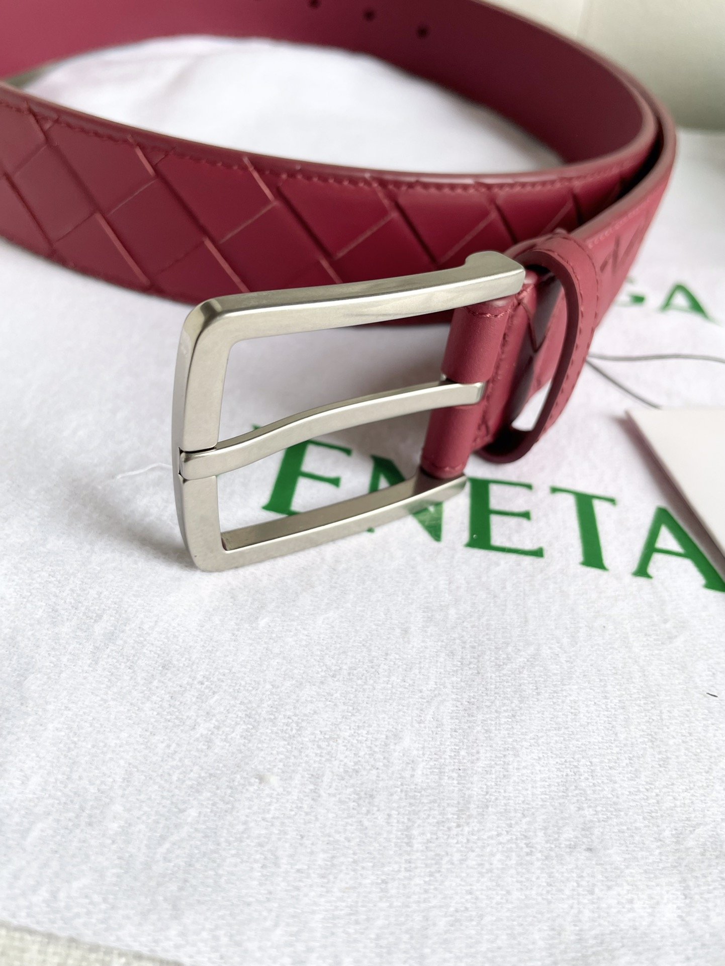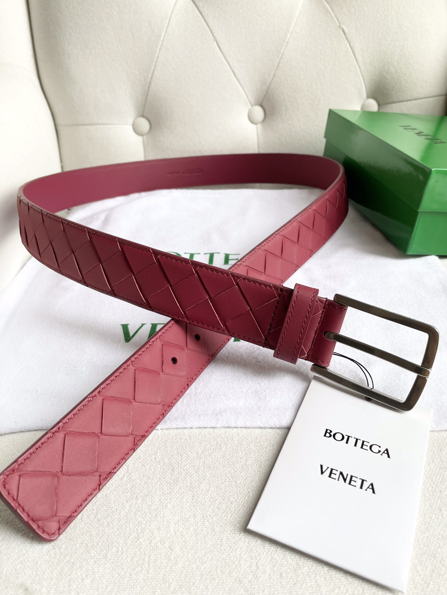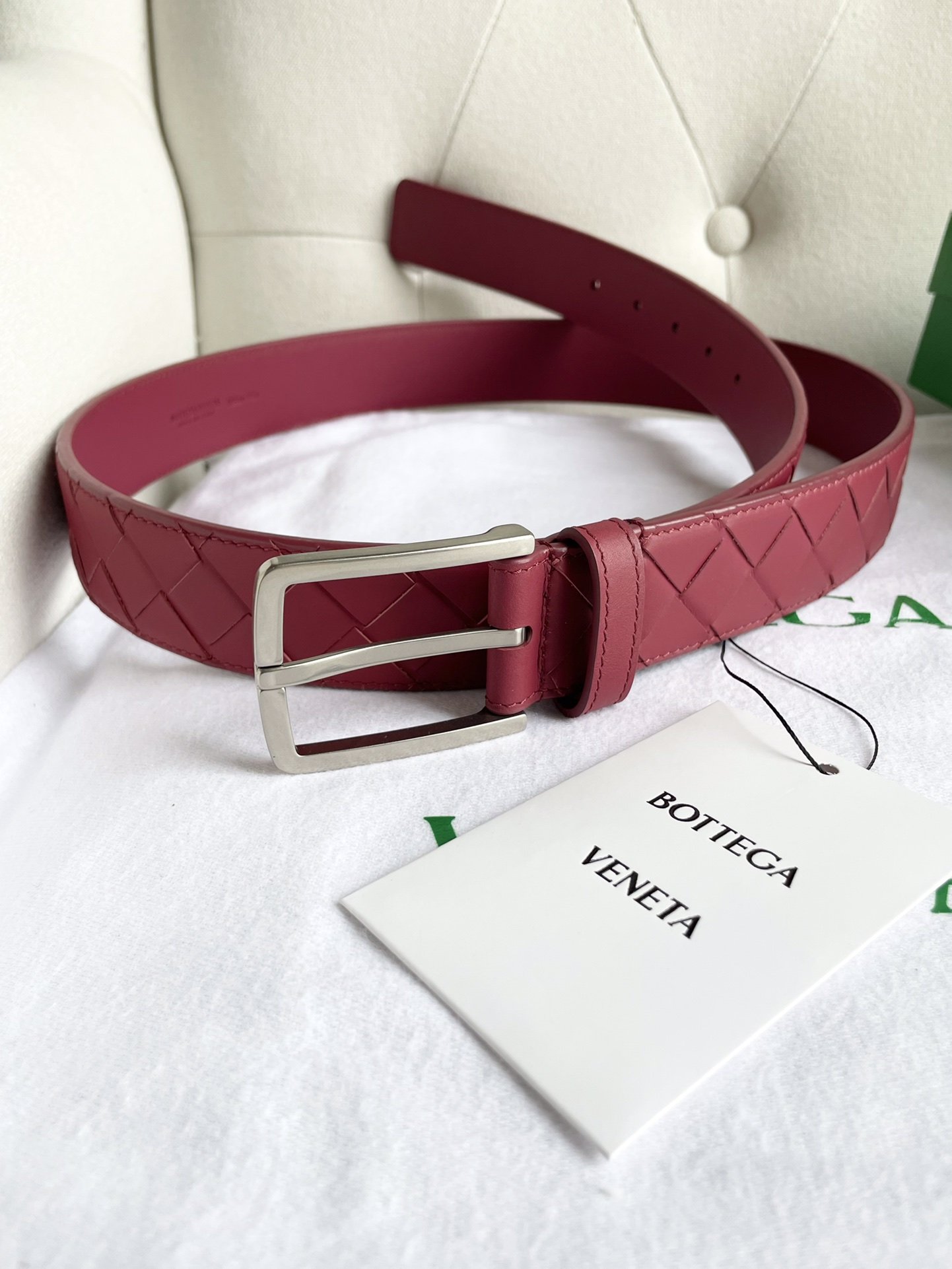New 2024 enlarged intreccio large grid braid, Italian cowhide + fine copper silver pin buckle, width 35mm.
