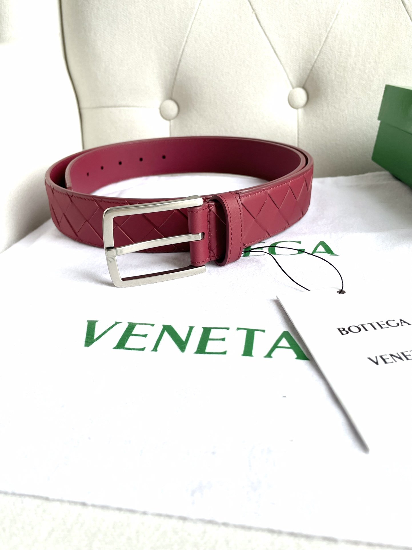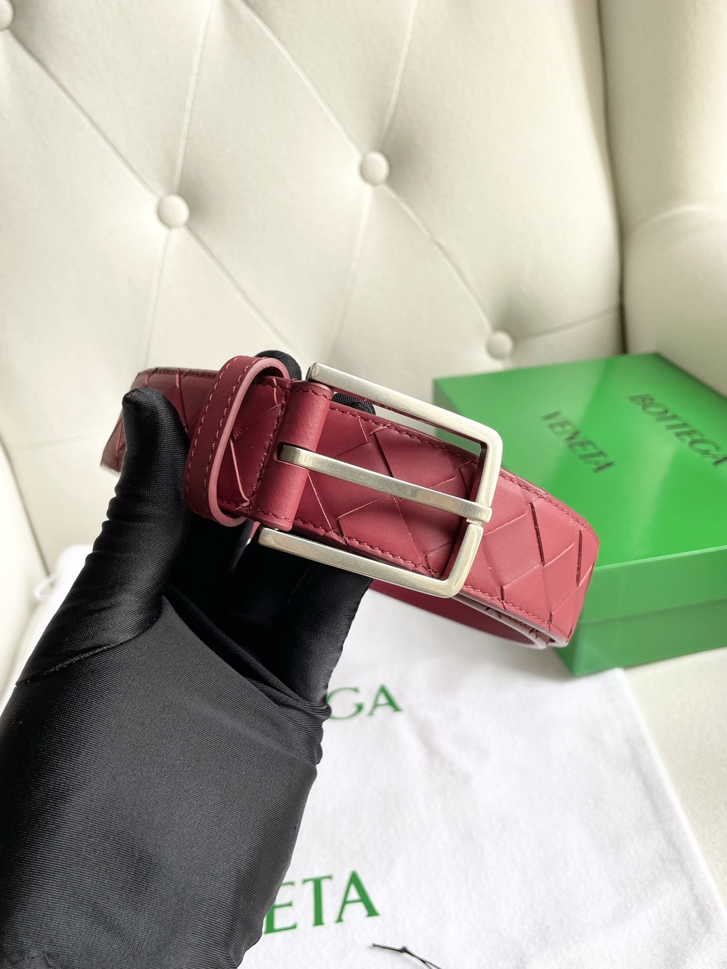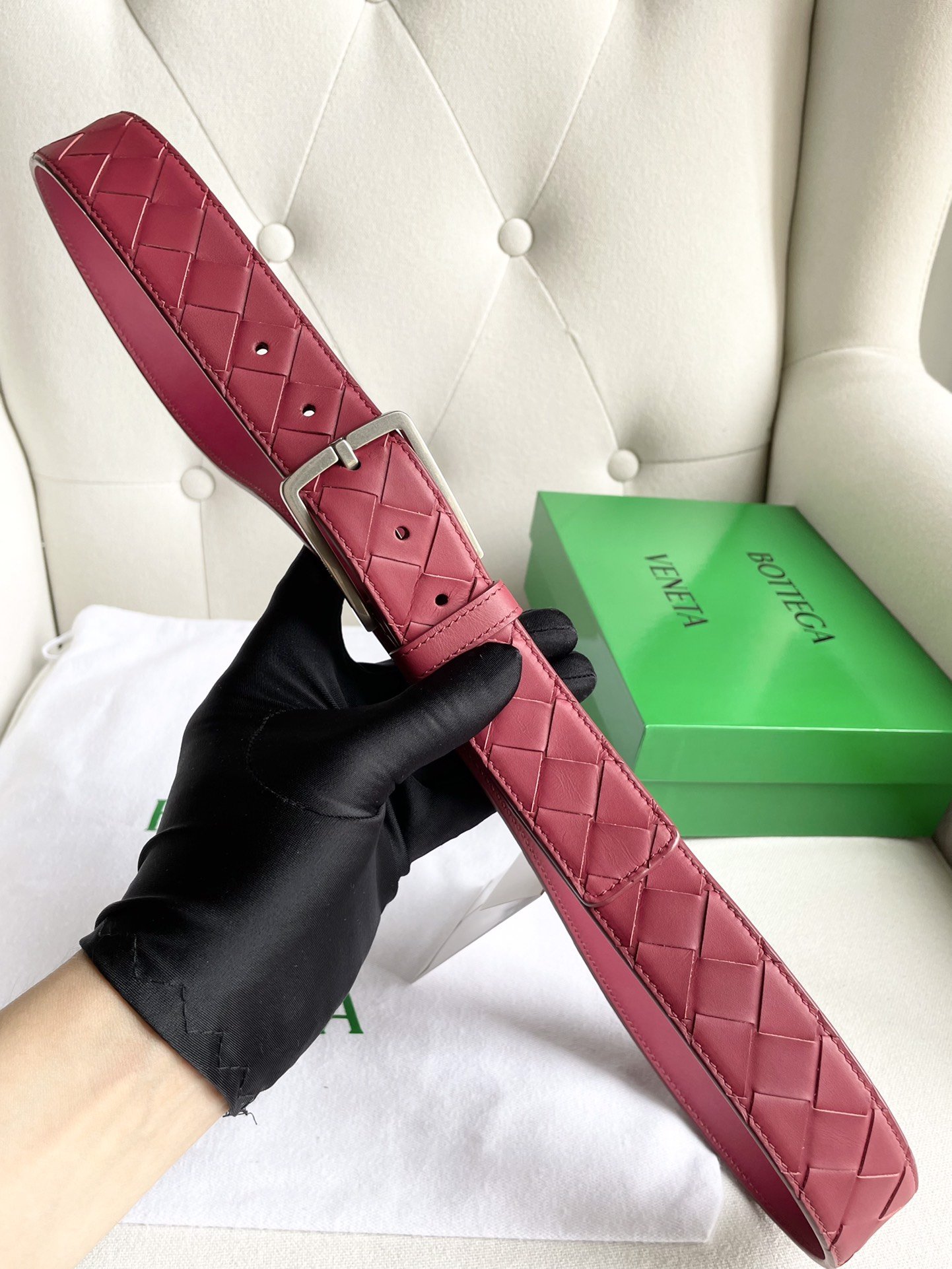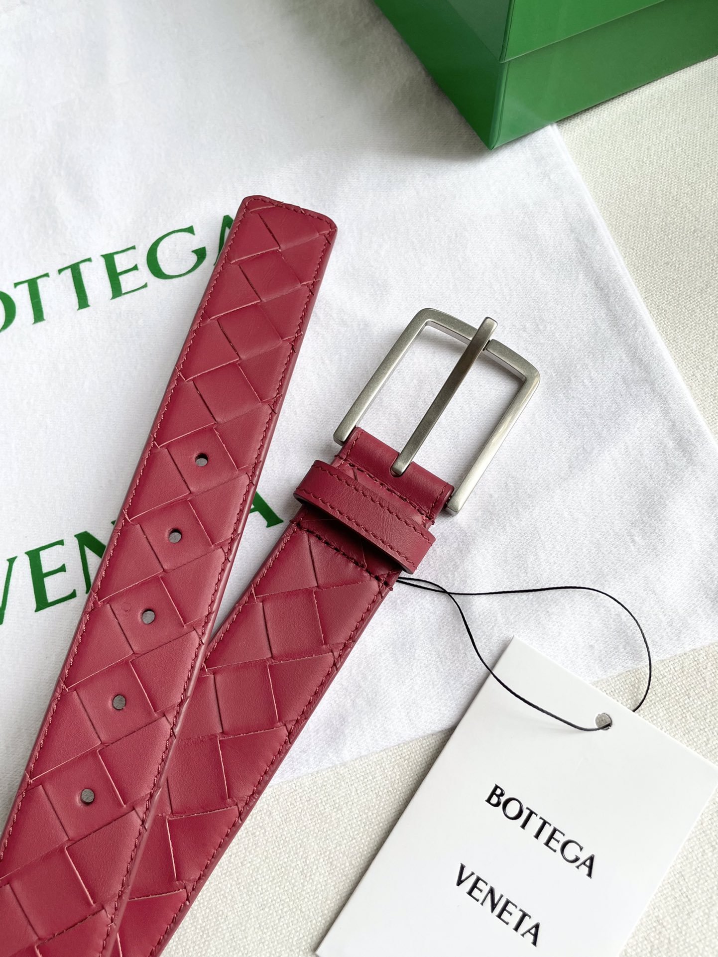 New 2024 enlarged intreccio large grid braid, Italian cowhide + fine copper silver pin buckle, width 35mm.