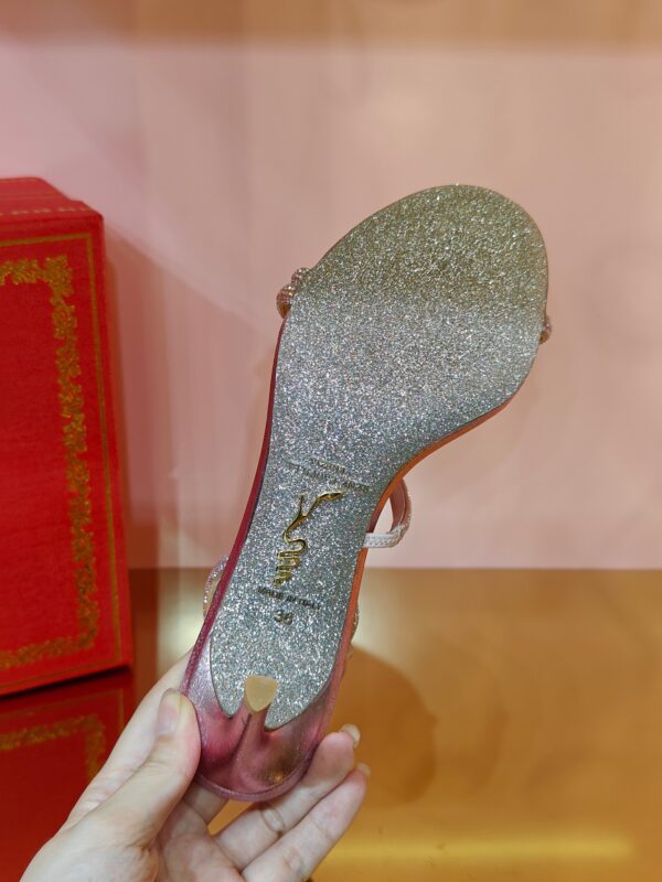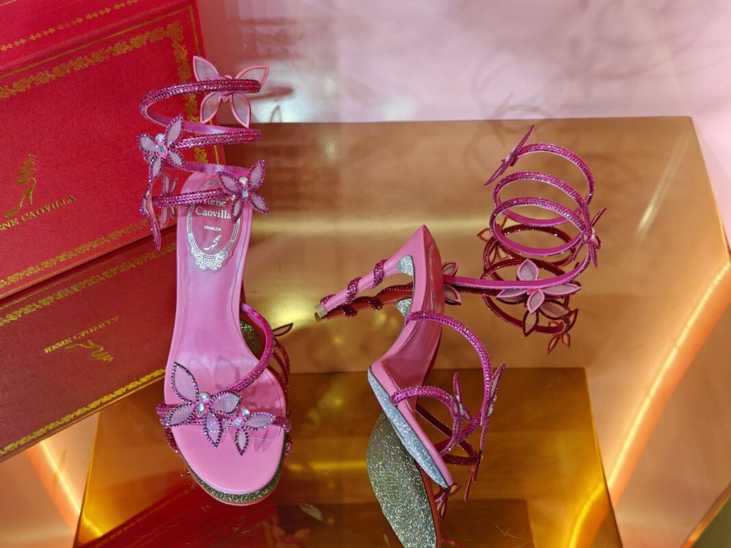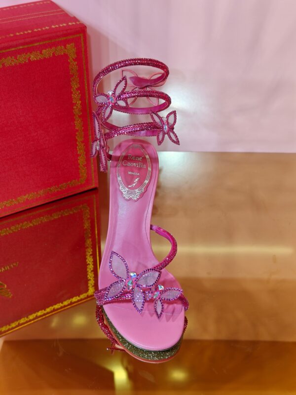 René Caovilla Butterfly series, original development, fairy butterfly snake-shaped strap crystal flat sandals for women, a new version of the iconic spiral snake-shaped strap, tulle butterfly rhinestone inlays, softly perched on the snake-shaped strap and crystal upper, shining brilliantly.