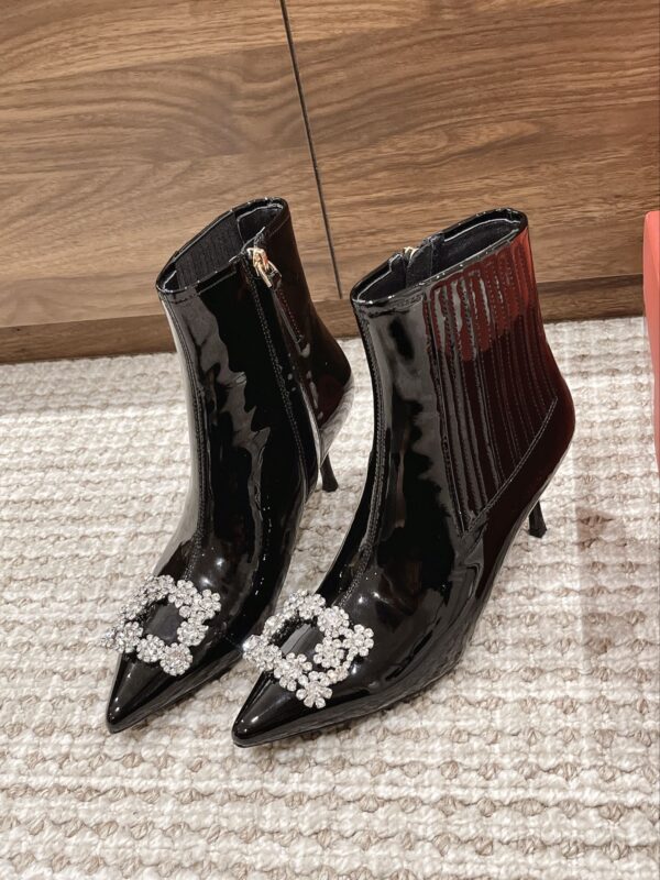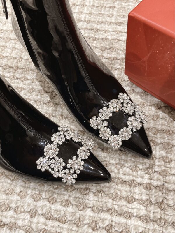 Rv pointed drill buckle high-heeled boots Purchasing level! The classic Swarovski diamond buckle is paired with a finely designed shoe shape, which is exquisite and fashionable, and the shoe shape is no different from the original one. The streamlines are all accurately reproduced with a ruler, and the original custom material is used! Inside zipper design for easy on and off! Heel height 6.5cm size 34-40 (40 customized non-refundable)