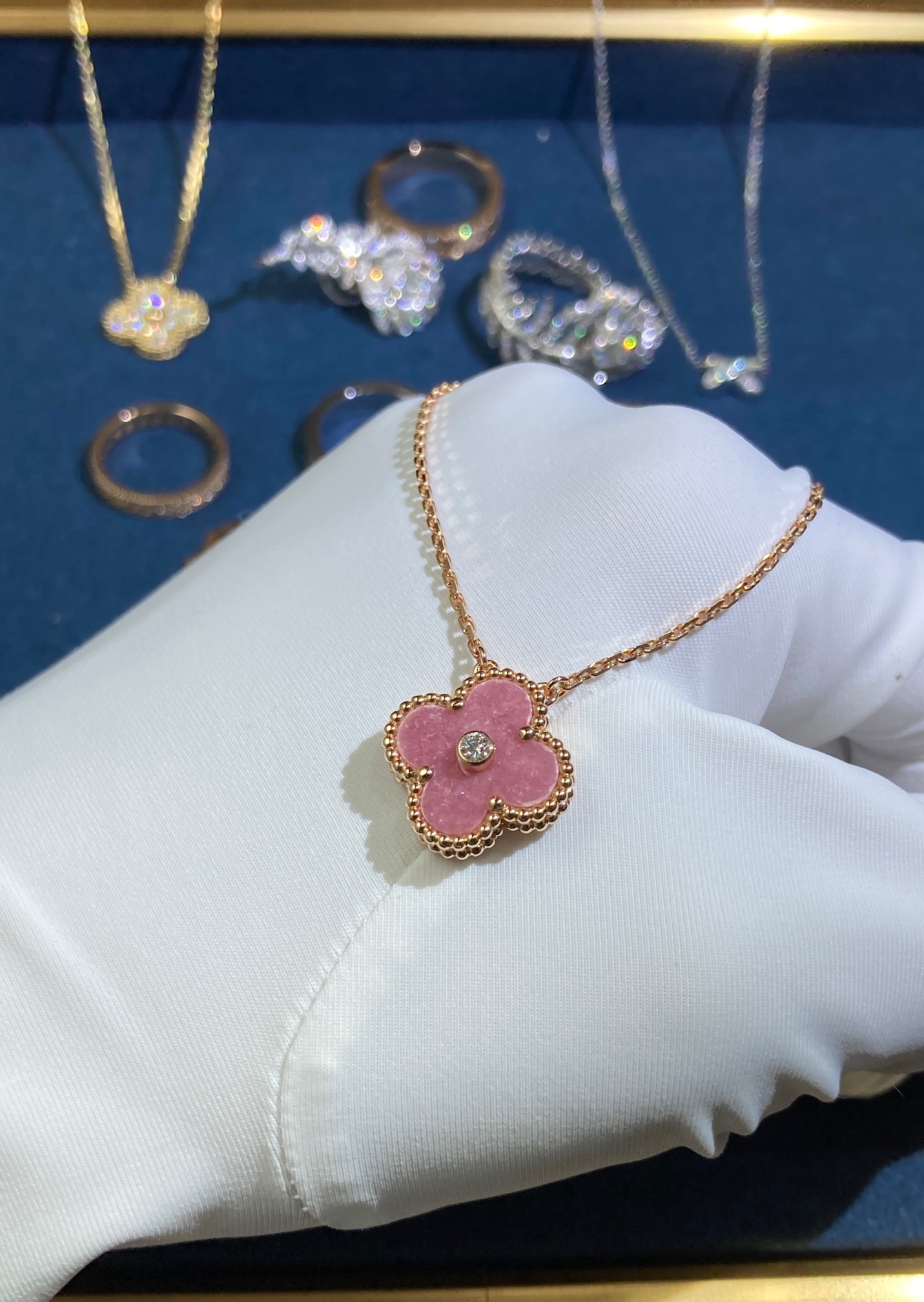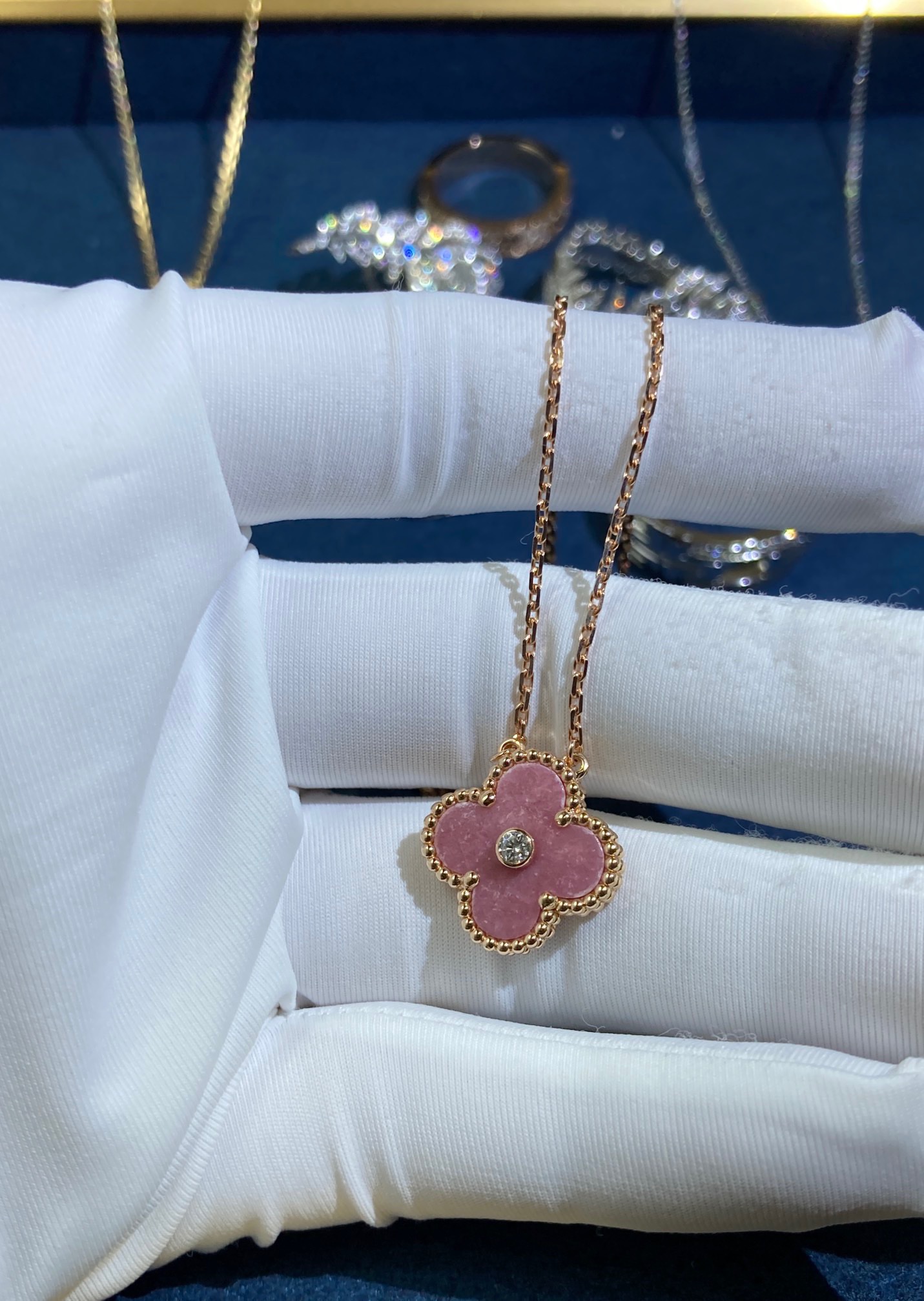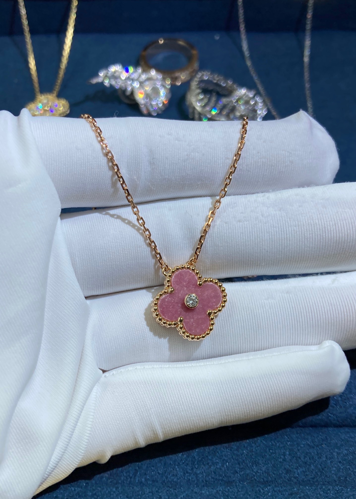 Rose Quartz One Diamond Necklace, Rose Gold