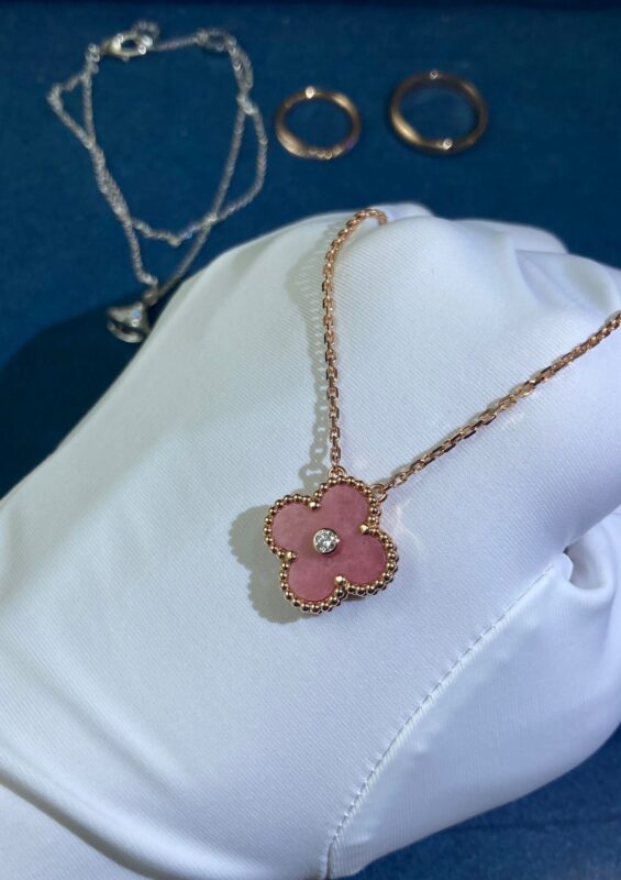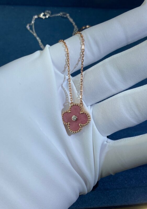 Rosestone One Diamond Clover Necklace, Rose Gold