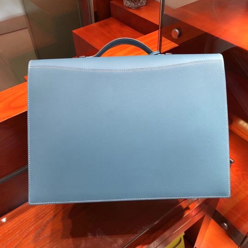 Sac a Depeches 37 Briefcase in Bleu Jean Epsom for Man