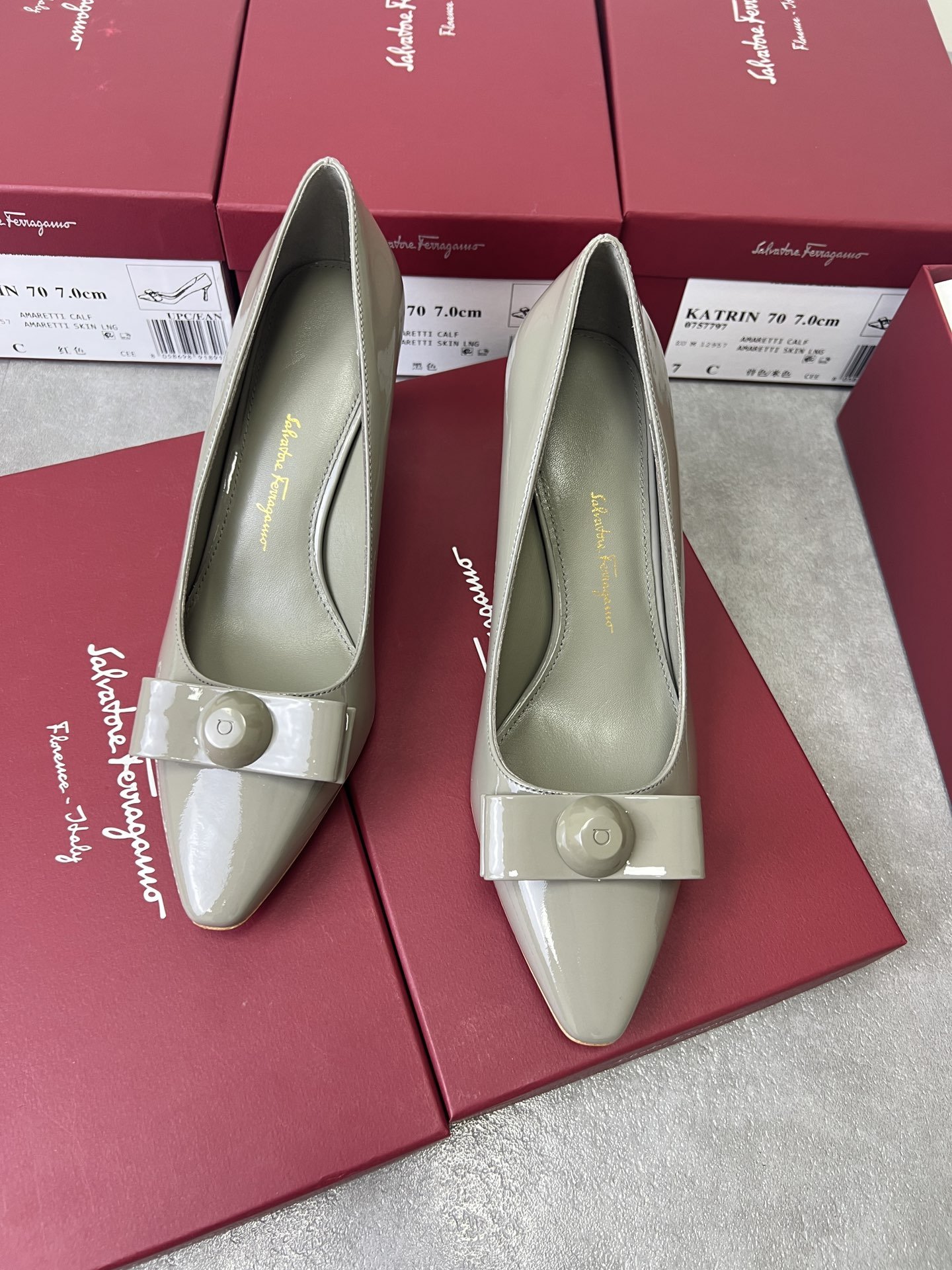 Salvatore Ferragamo 2023 New High-heeled The material is imported sheepskin, the lining is sheepskin, the sole is made of genuine leather imported from Italy, the heel is covered with genuine leather, and the upper is made of quality cowhide material High 7cm