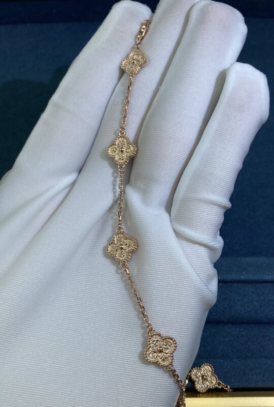 Six-Flower Gilded Four-Leaf Clover Bracelet, Rose Gold