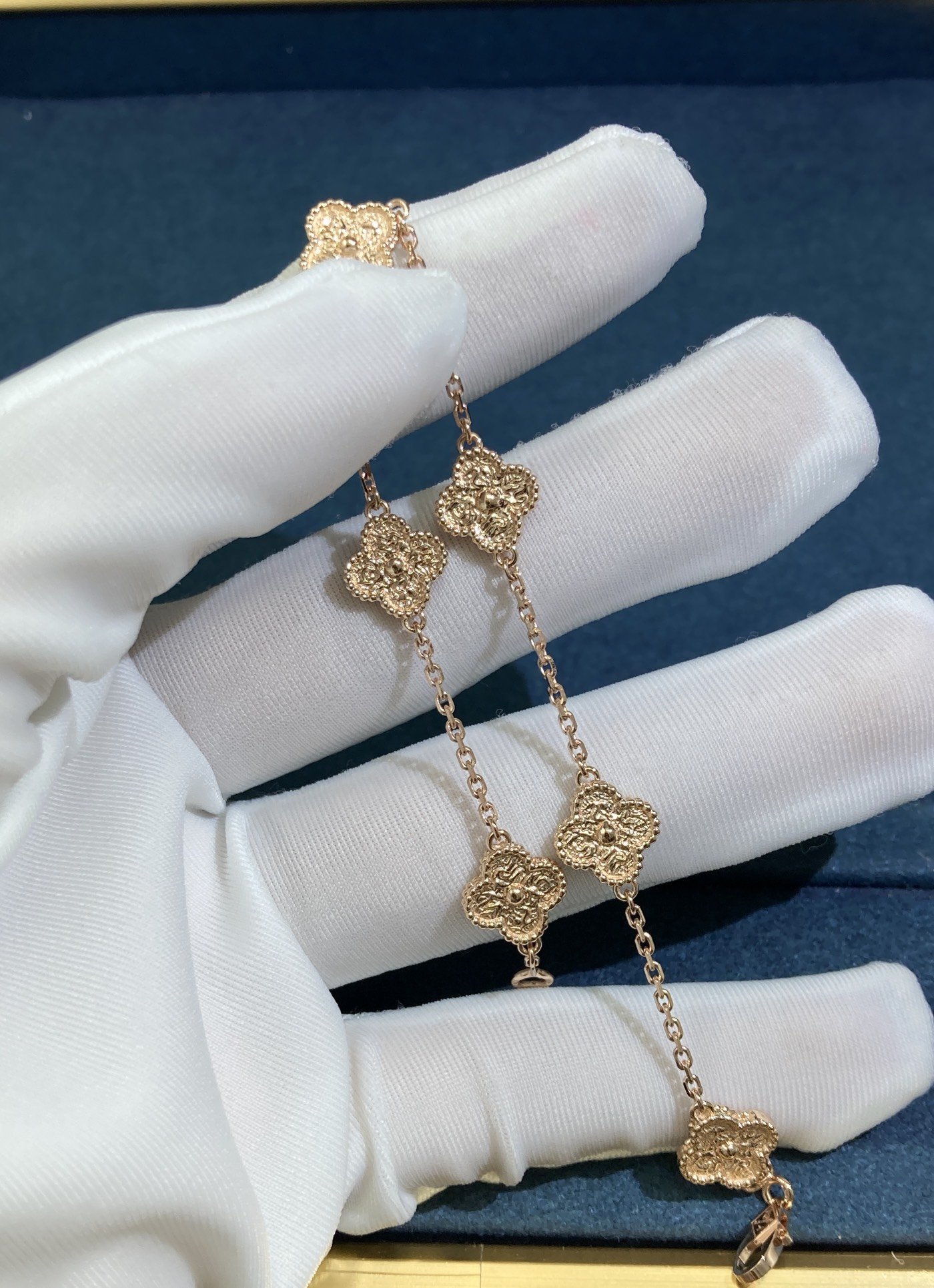 Six-Flower Gilded Four-Leaf Clover Bracelet, Rose Gold