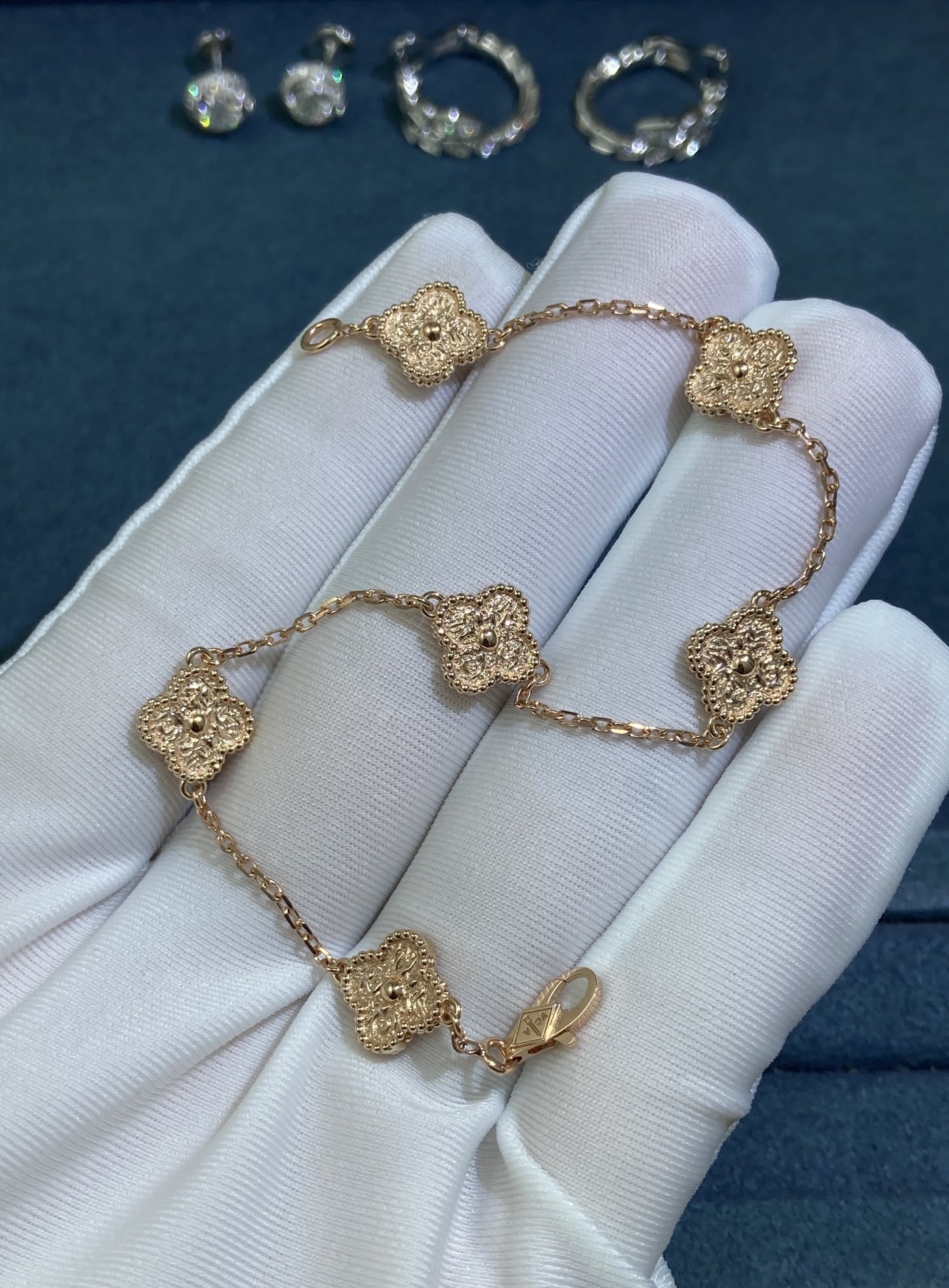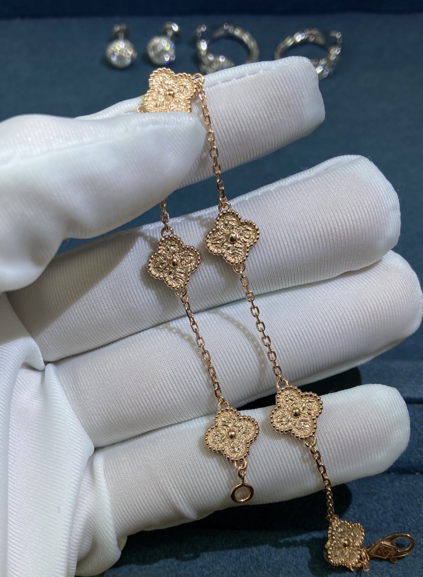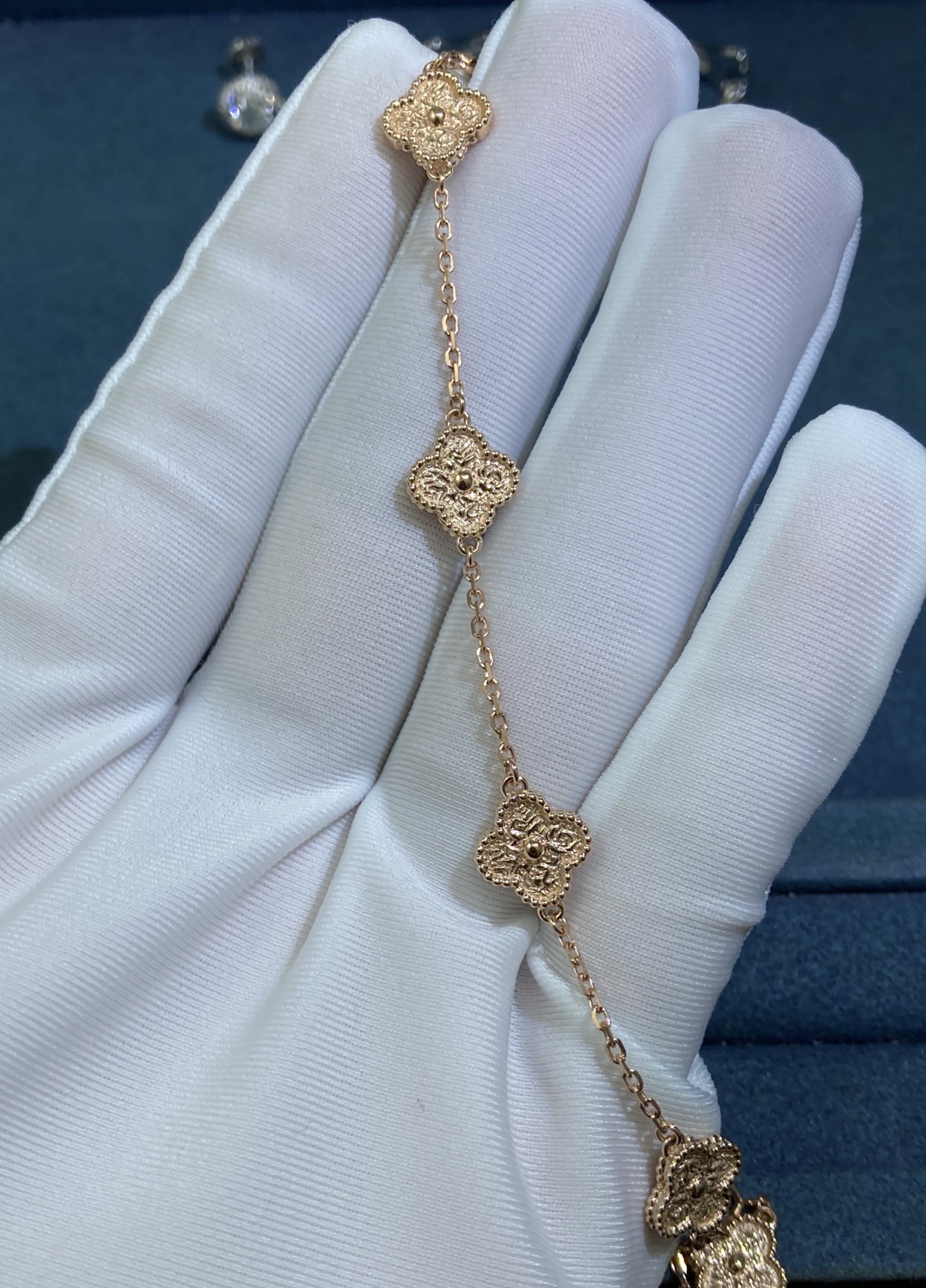 Van Cleef & Arpel Six-Flower Gold-Plated Four-Leaf Clover Bracelet, Rose Gold