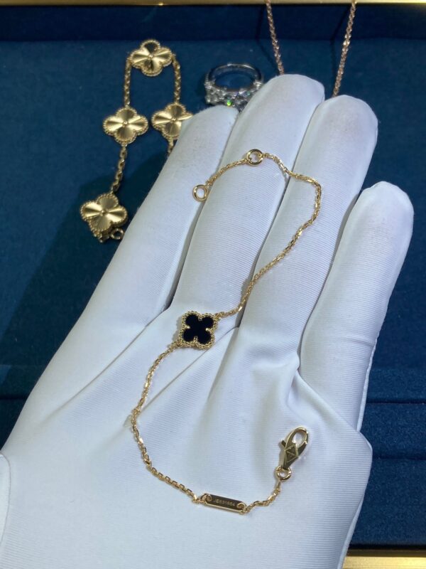 Small Black Onyx Clover Bracelet, Yellow Gold