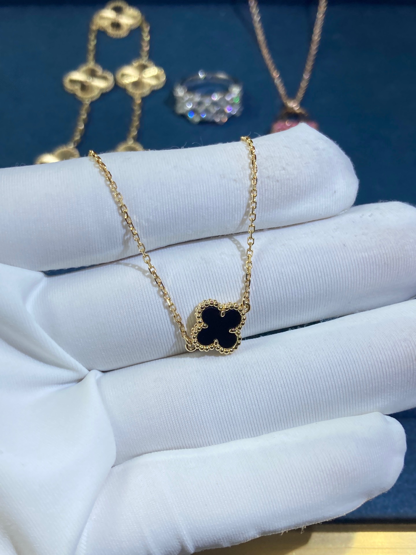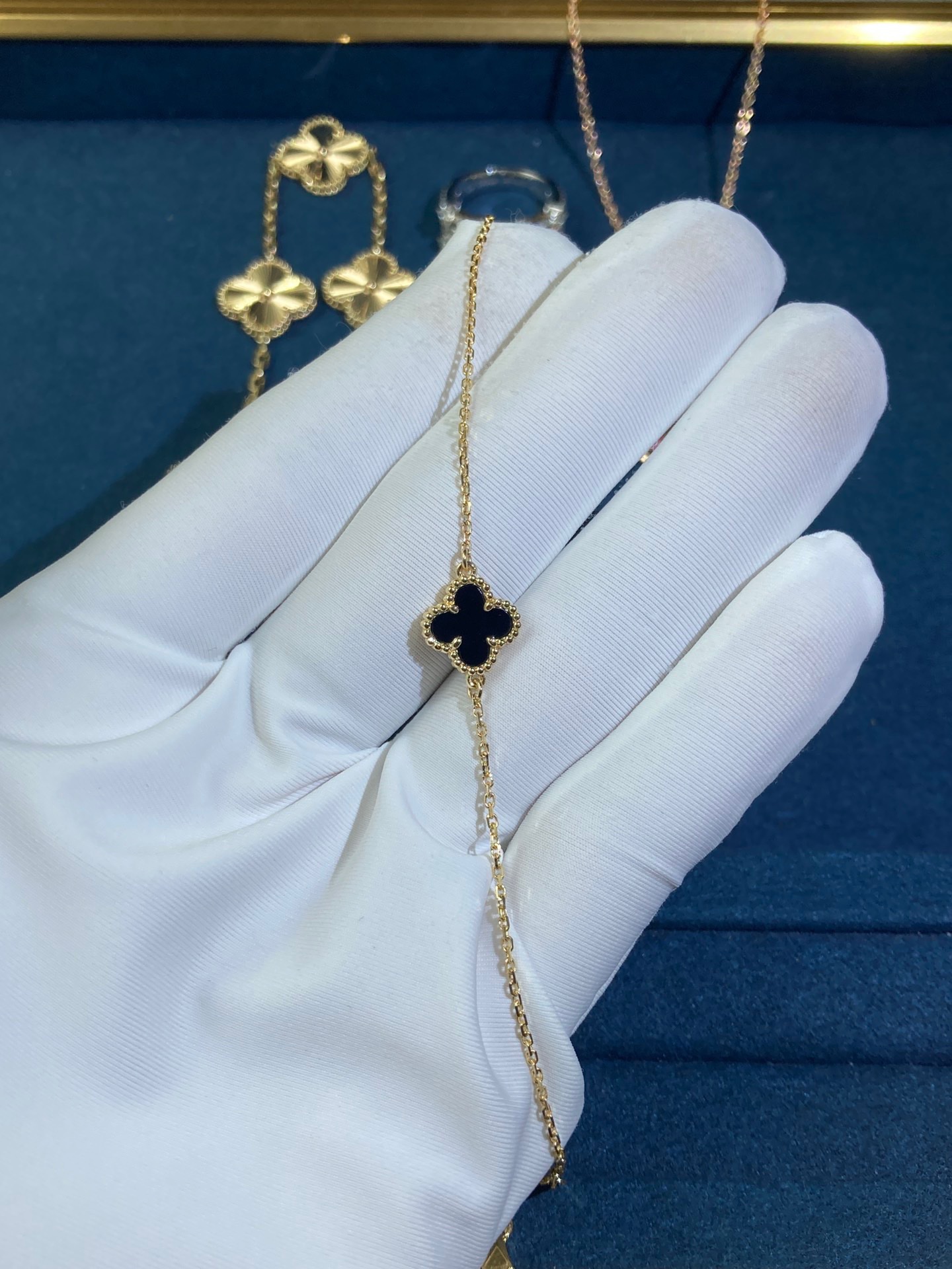 Small Black Onyx Clover Bracelet, Yellow Gold