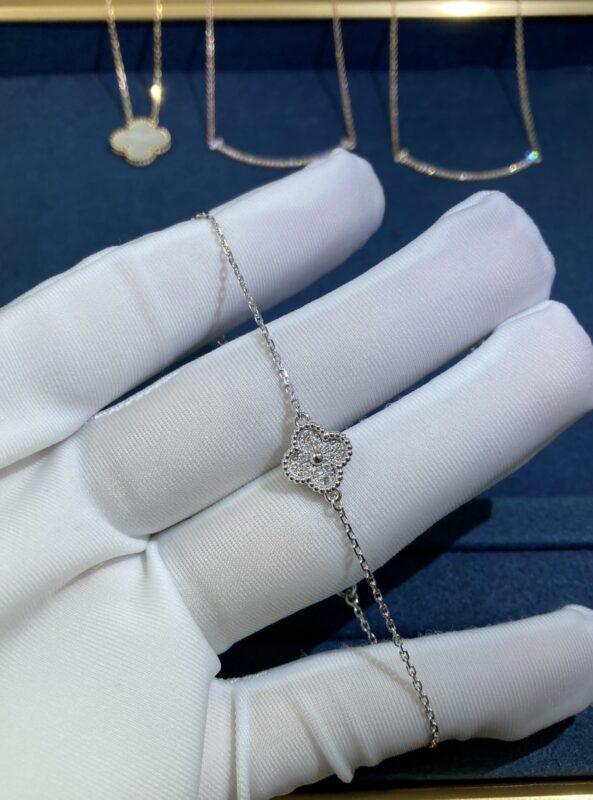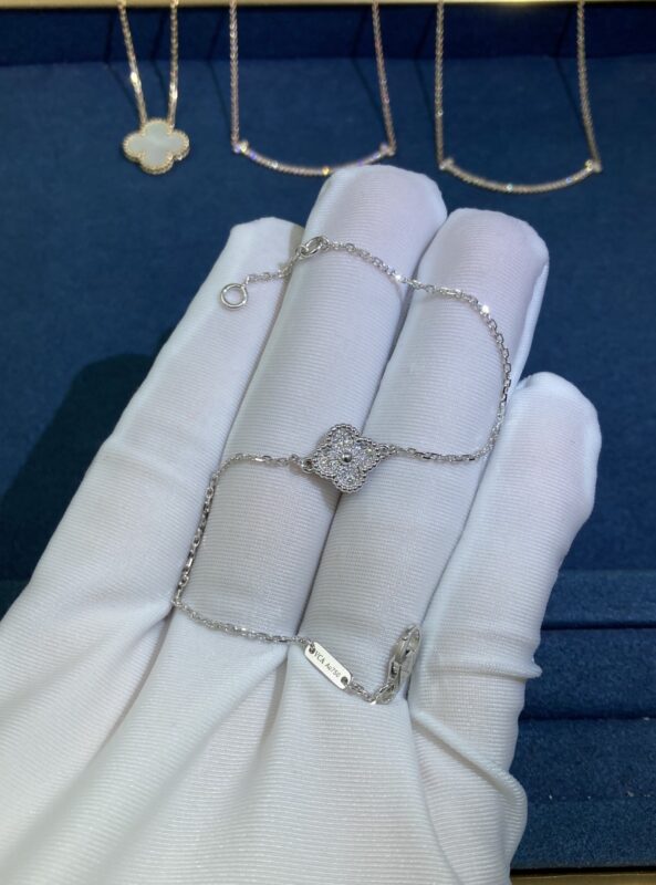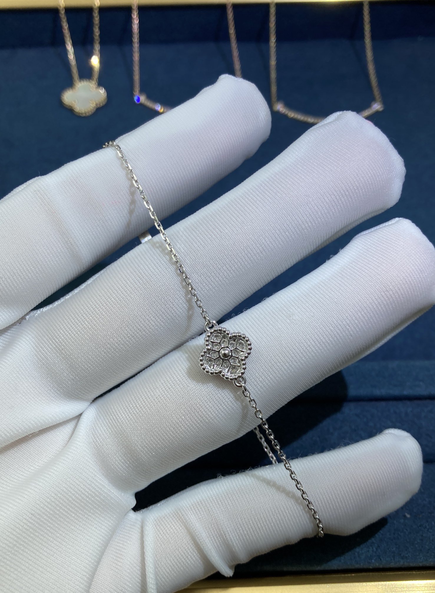 Small Four-Leaf Clover Bracelet with Diamonds, White Gold