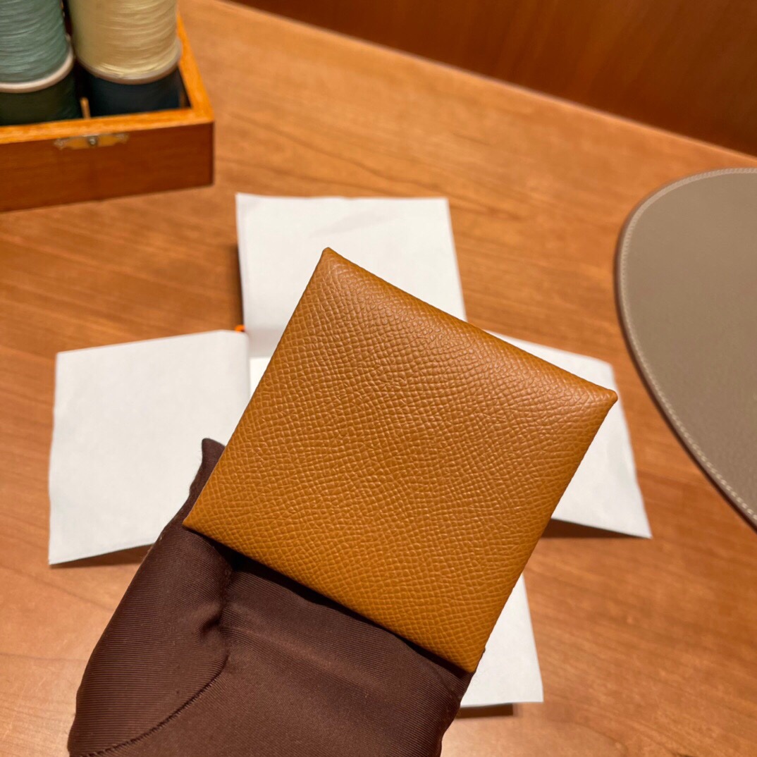 37 Gold Brown Classic Epsom Leather Coin Purse Small and cute, it can fit in any small bag, a good helper for storage