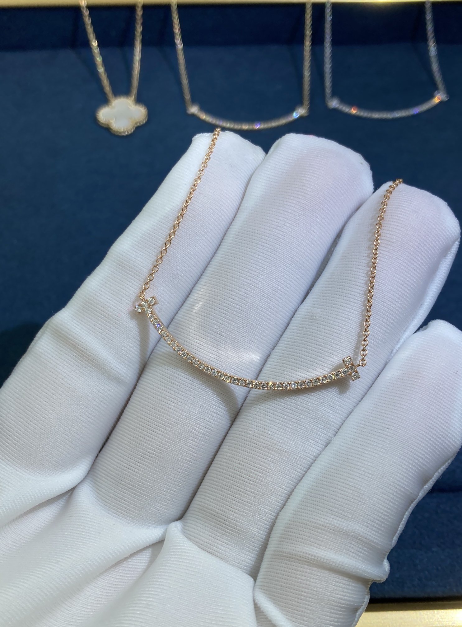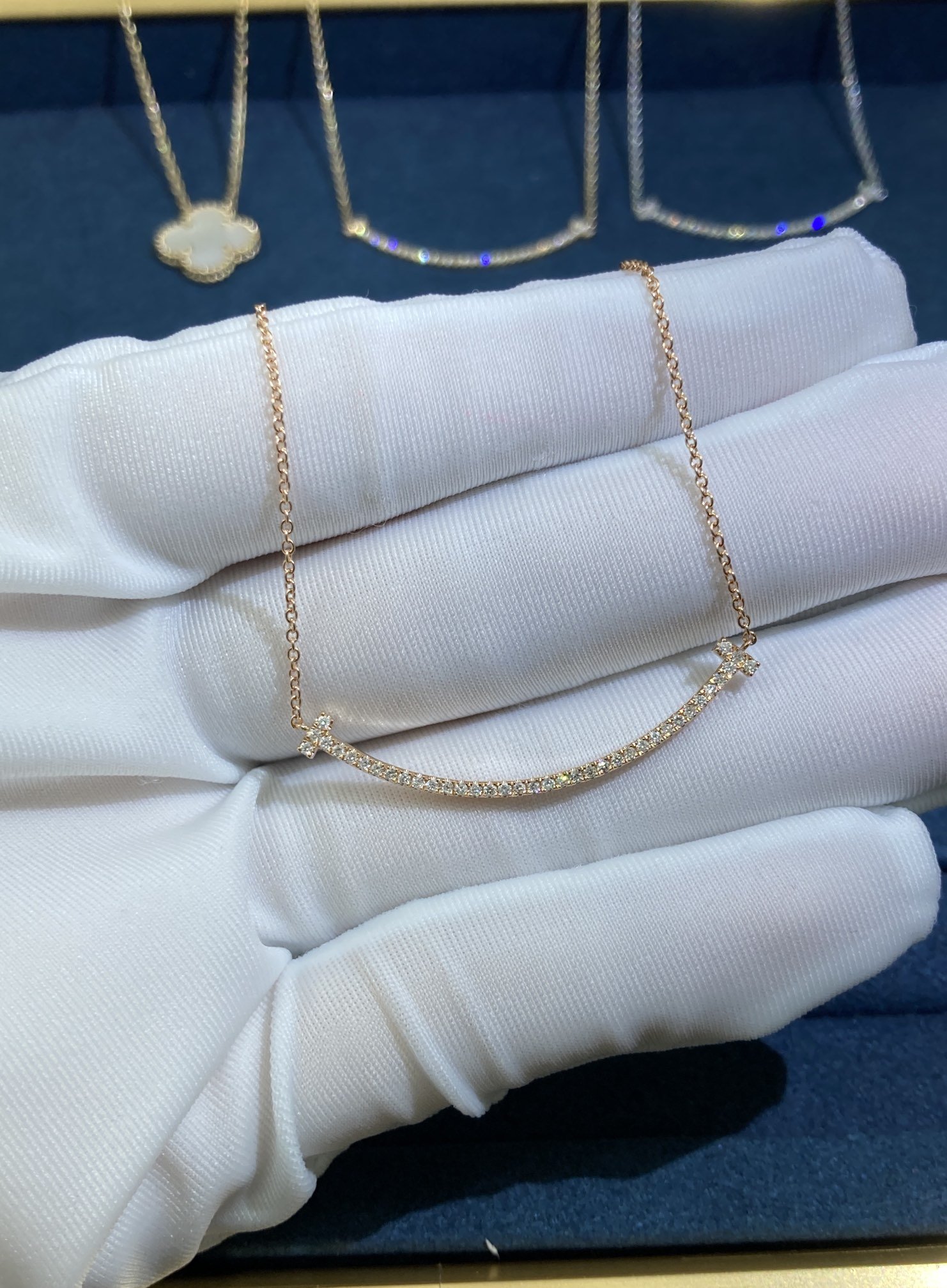Small Smiley Face Necklace with Diamonds, Rose Gold