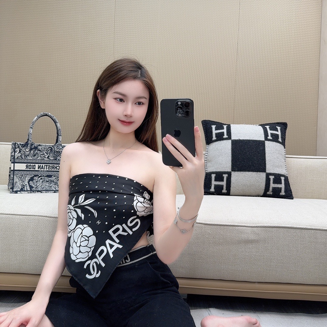Chanel 2024 Small Square Scarf 90x90cm 100% Silk