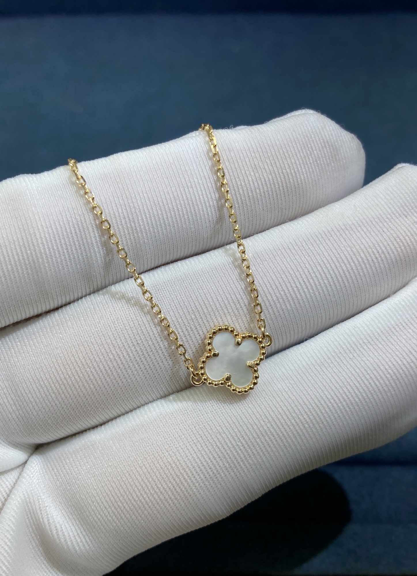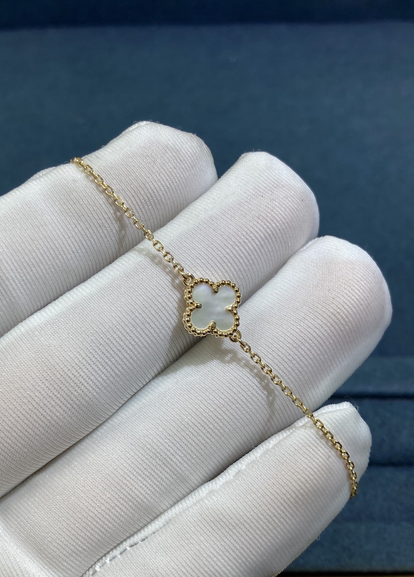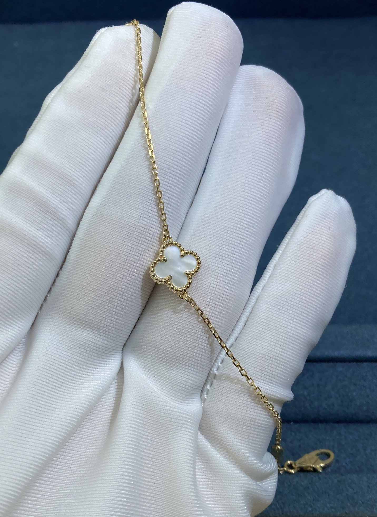 VCA Small White Shell Clover Bracelet, Yellow Gold