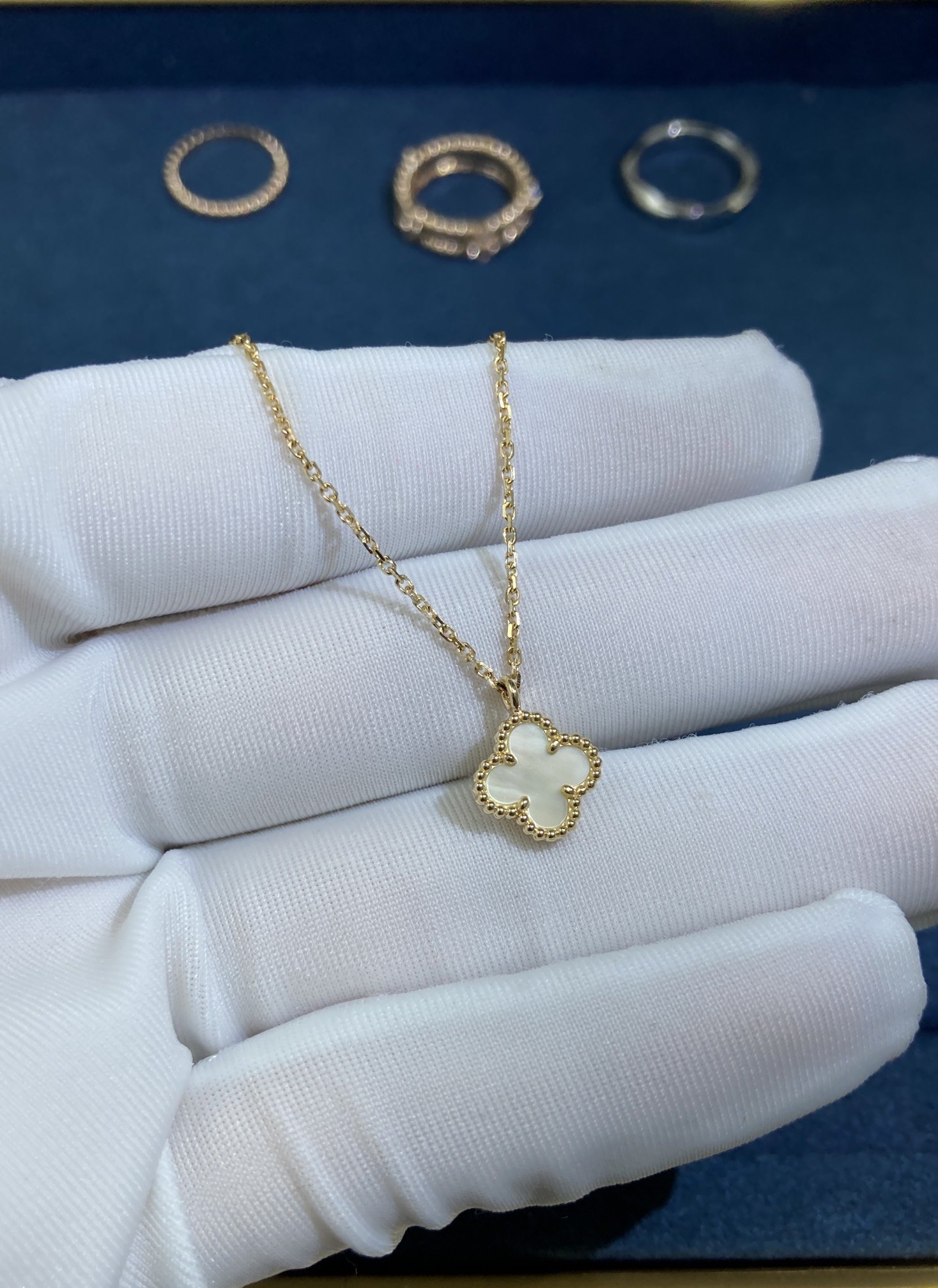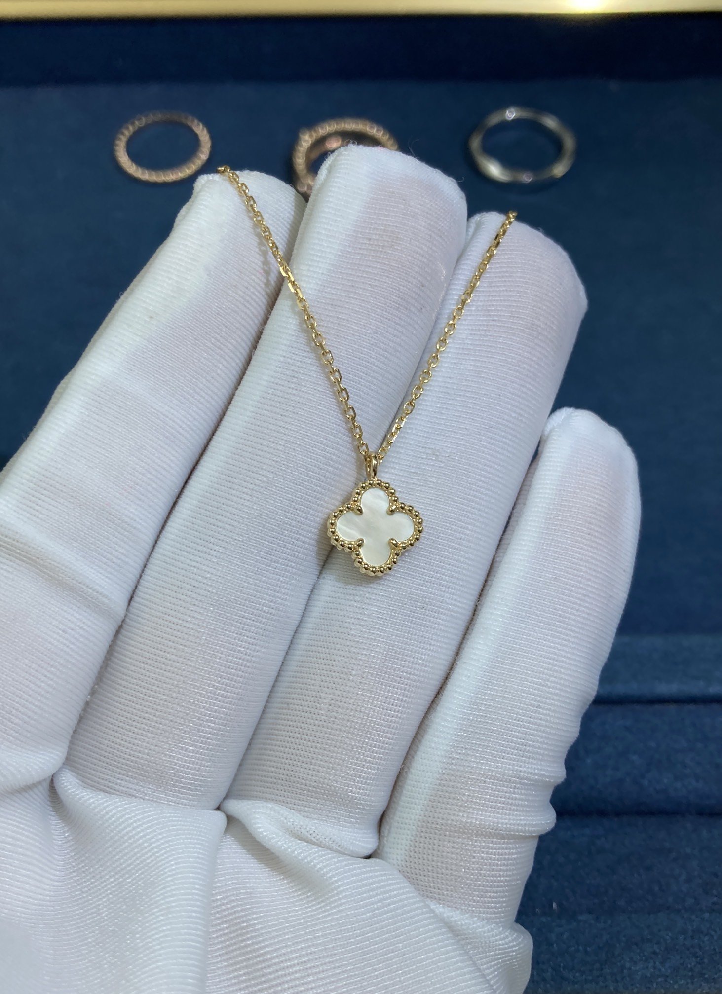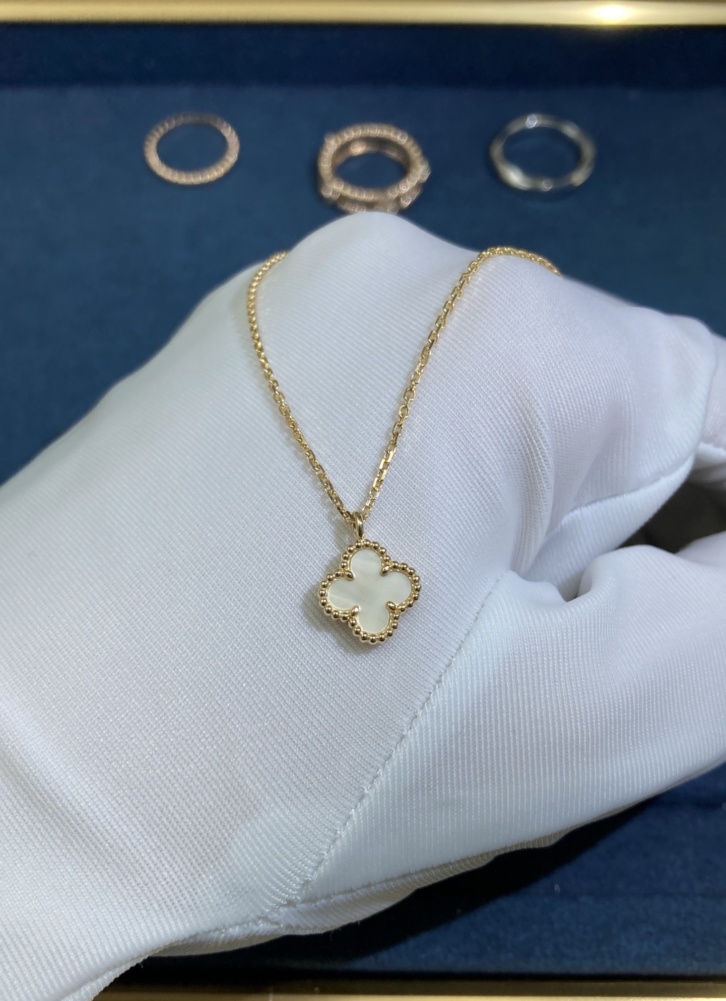 VCA Small White Shell Clover Necklace, Yellow Gold