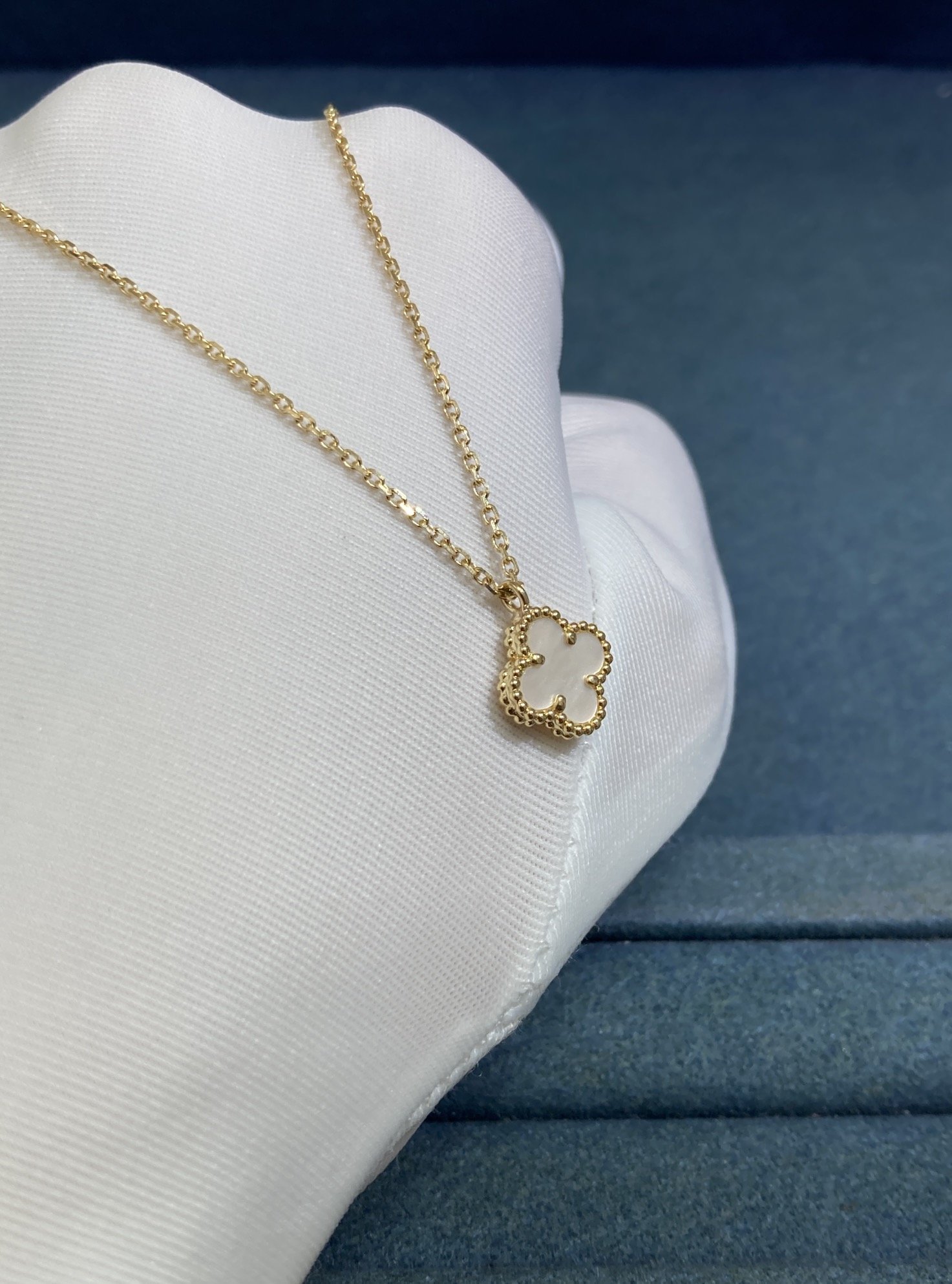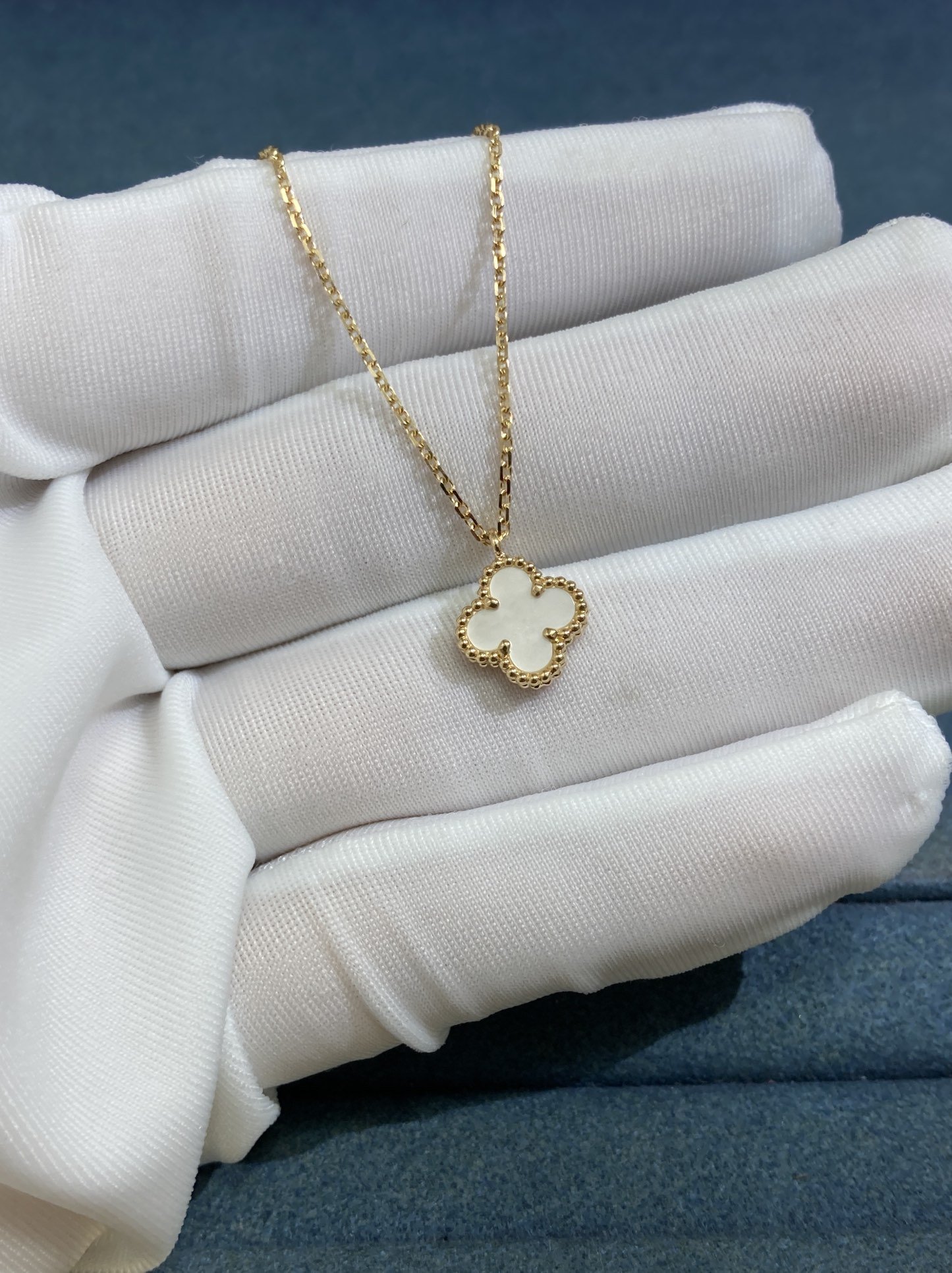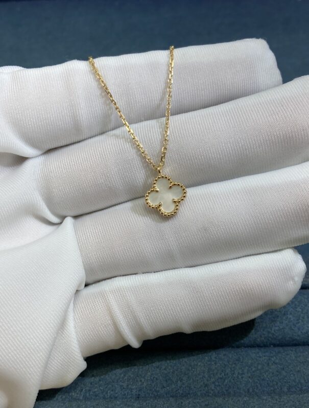 VCA Small White Shell Clover Necklace, Yellow Gold