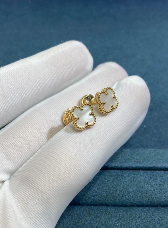 Cartier Small White Shell Clover Stud Earrings, Yellow Gold