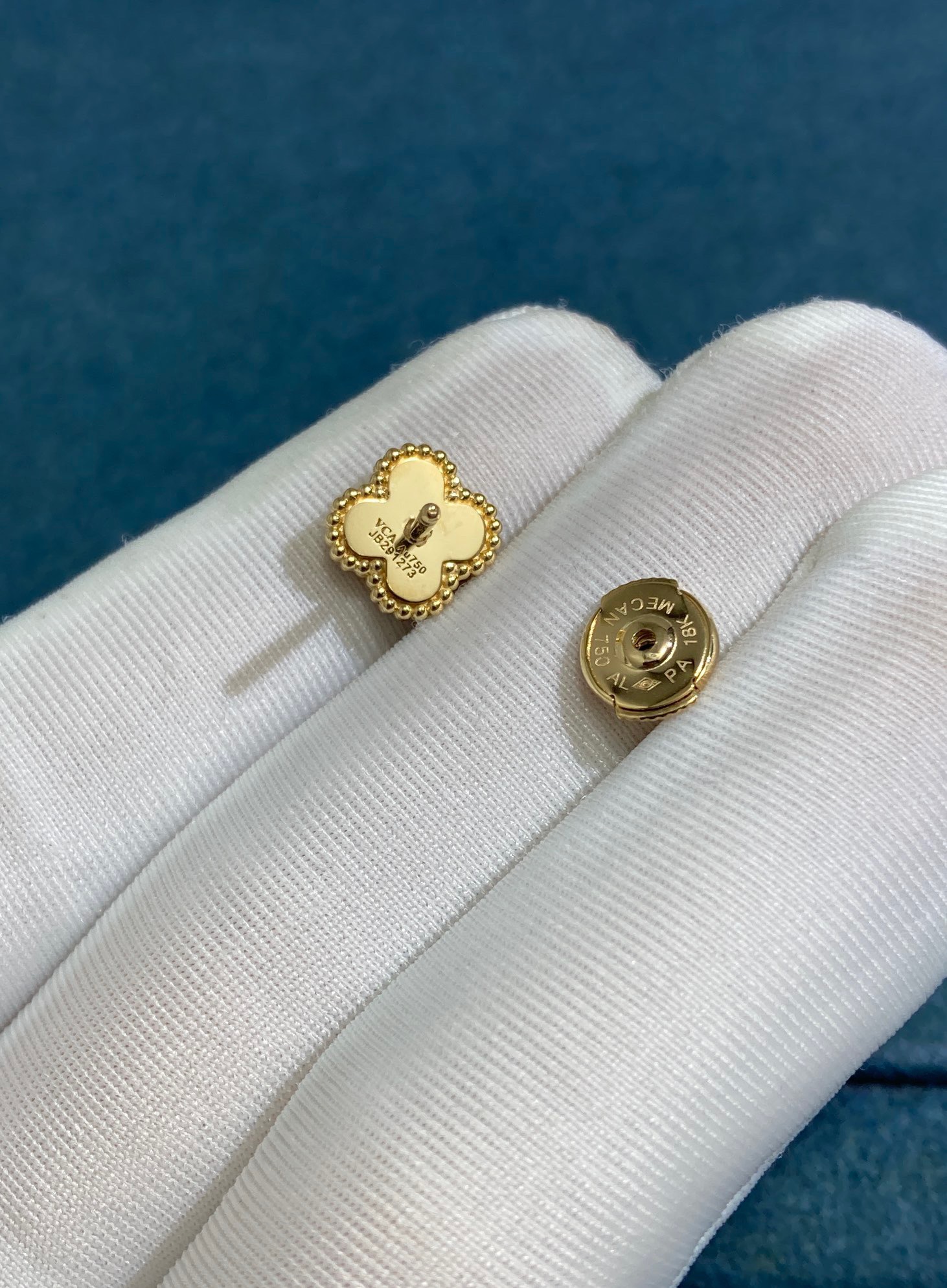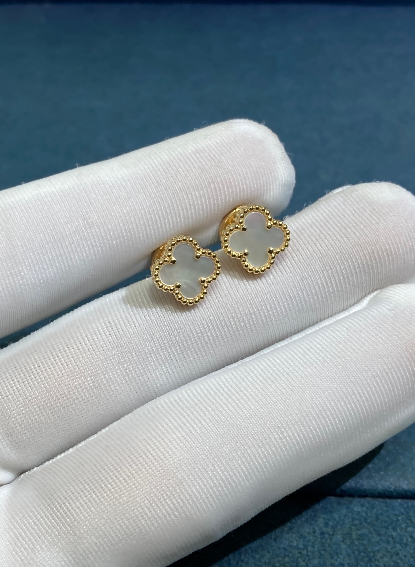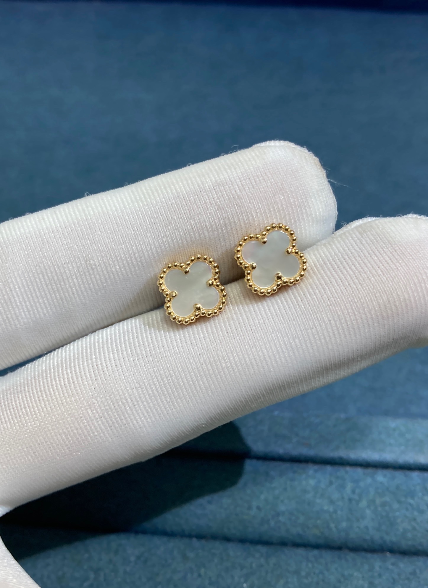 Cartier Small White Shell Clover Stud Earrings, Yellow Gold