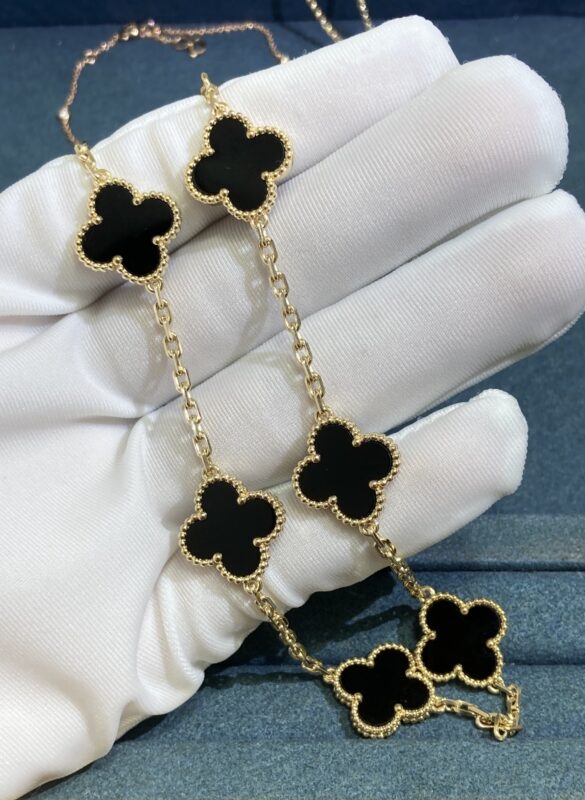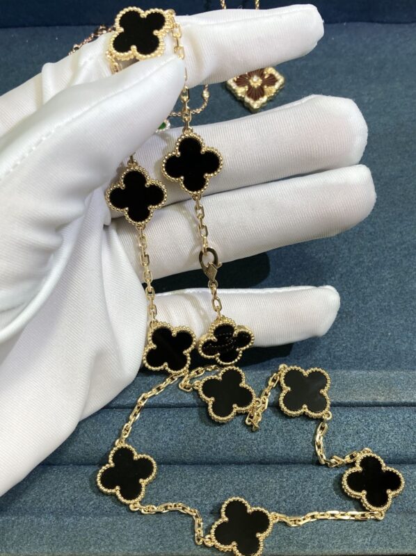 VCA Ten Flowers Black Onyx Clover Necklace, Yellow Gold