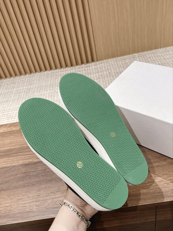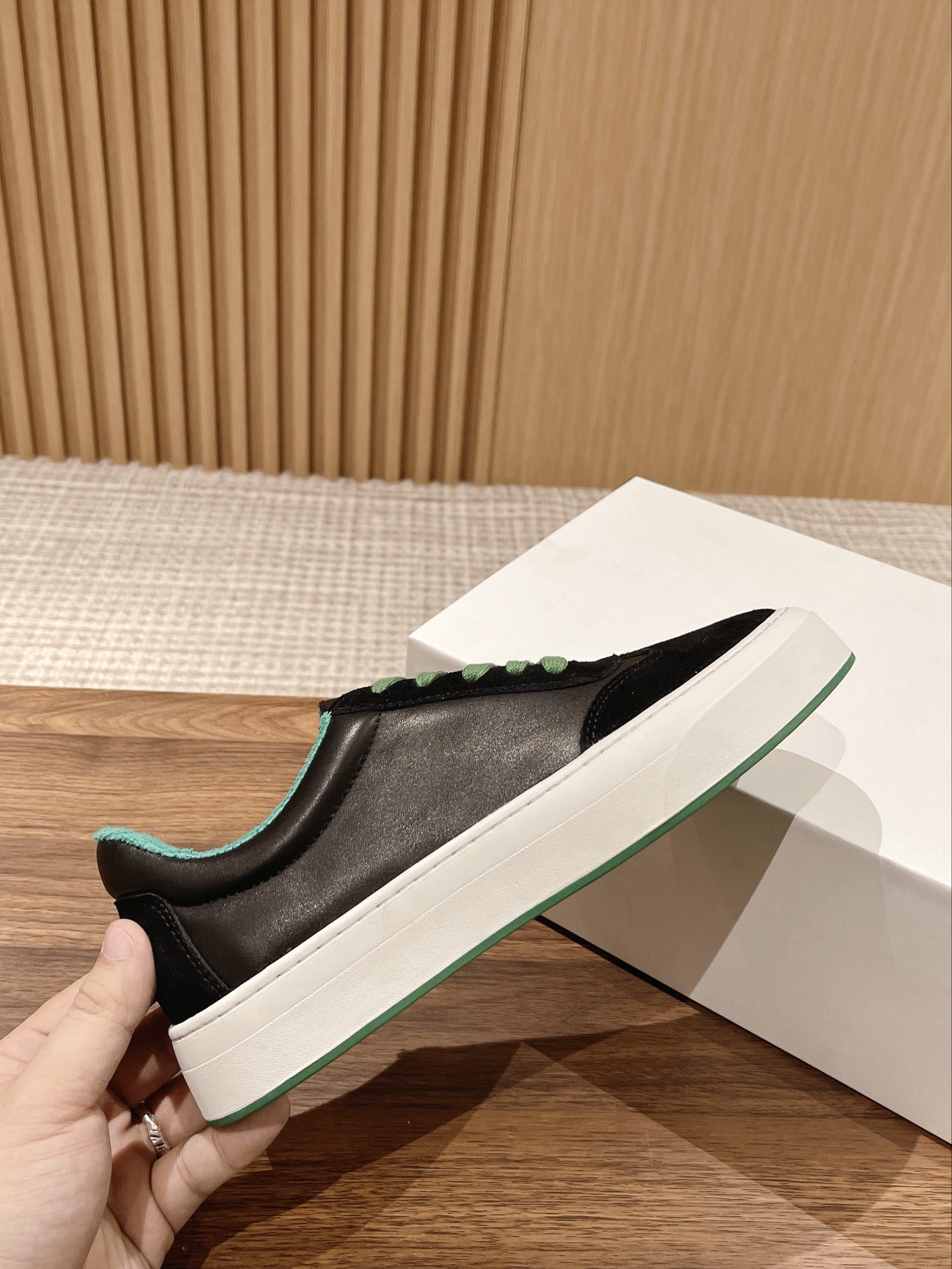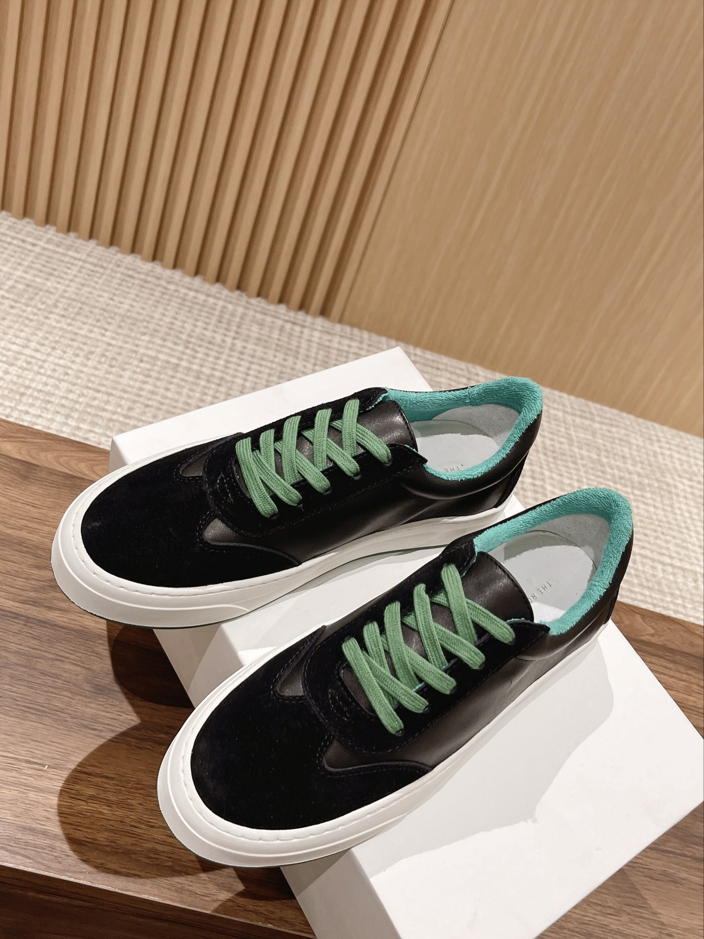 THE ROW minimalist style casual white shoes Even a pair of ordinary white shoes can be full of high-end sense. The off-white upper is decorated with green laces and the rear tail. It is retro and western style. It is invincible and versatile in daily life. The upper foot is comfortable and soft, and the foot feels great. Vegetable tanned calfskin stitched with suede, original molded rubber outsole. Size: 35-39