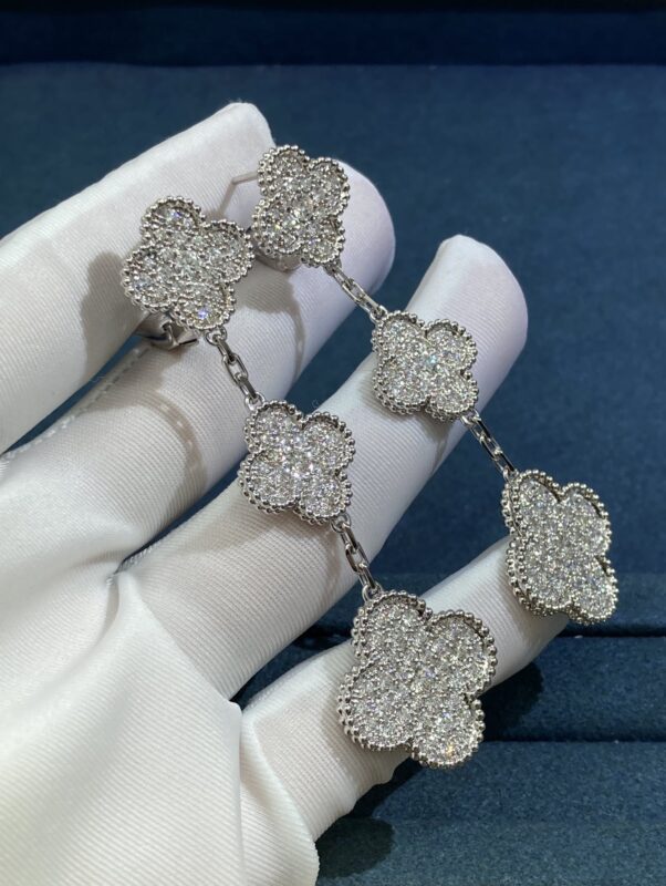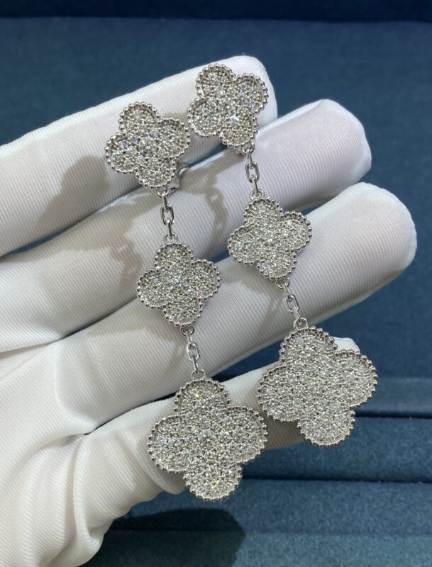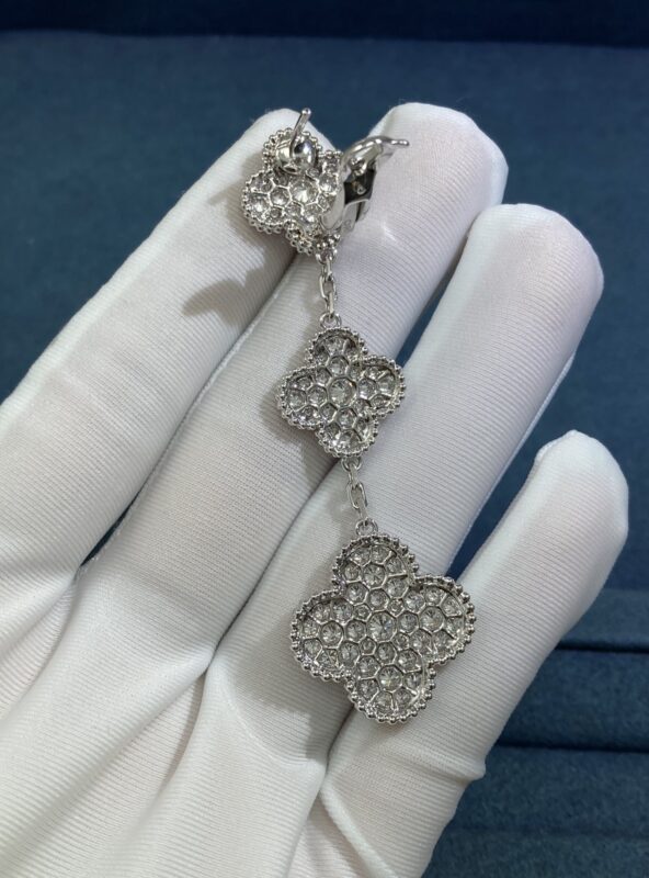Van Cleef & Arpel Three-flowered four-leaf clover earrings, white gold |