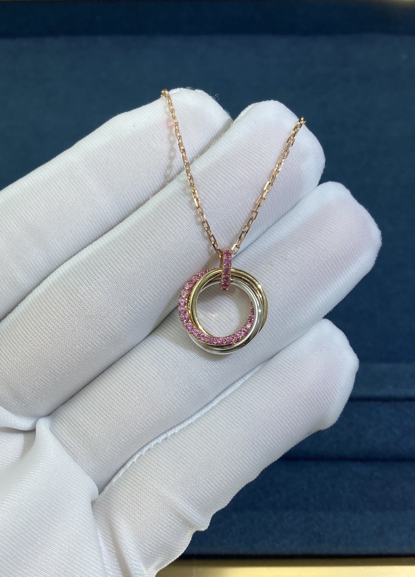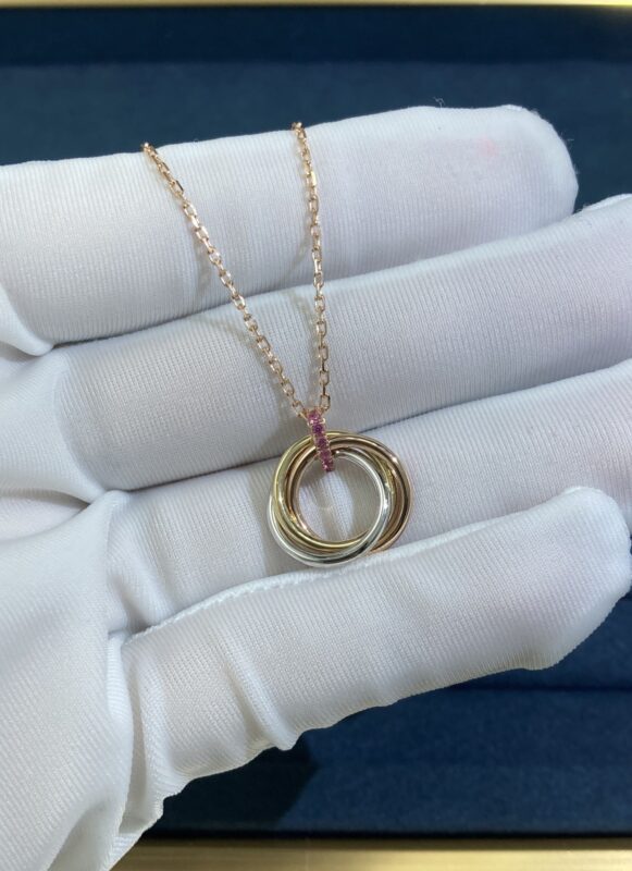 Three Ring Necklace, White Gold + Yellow Gold + Rose Gold