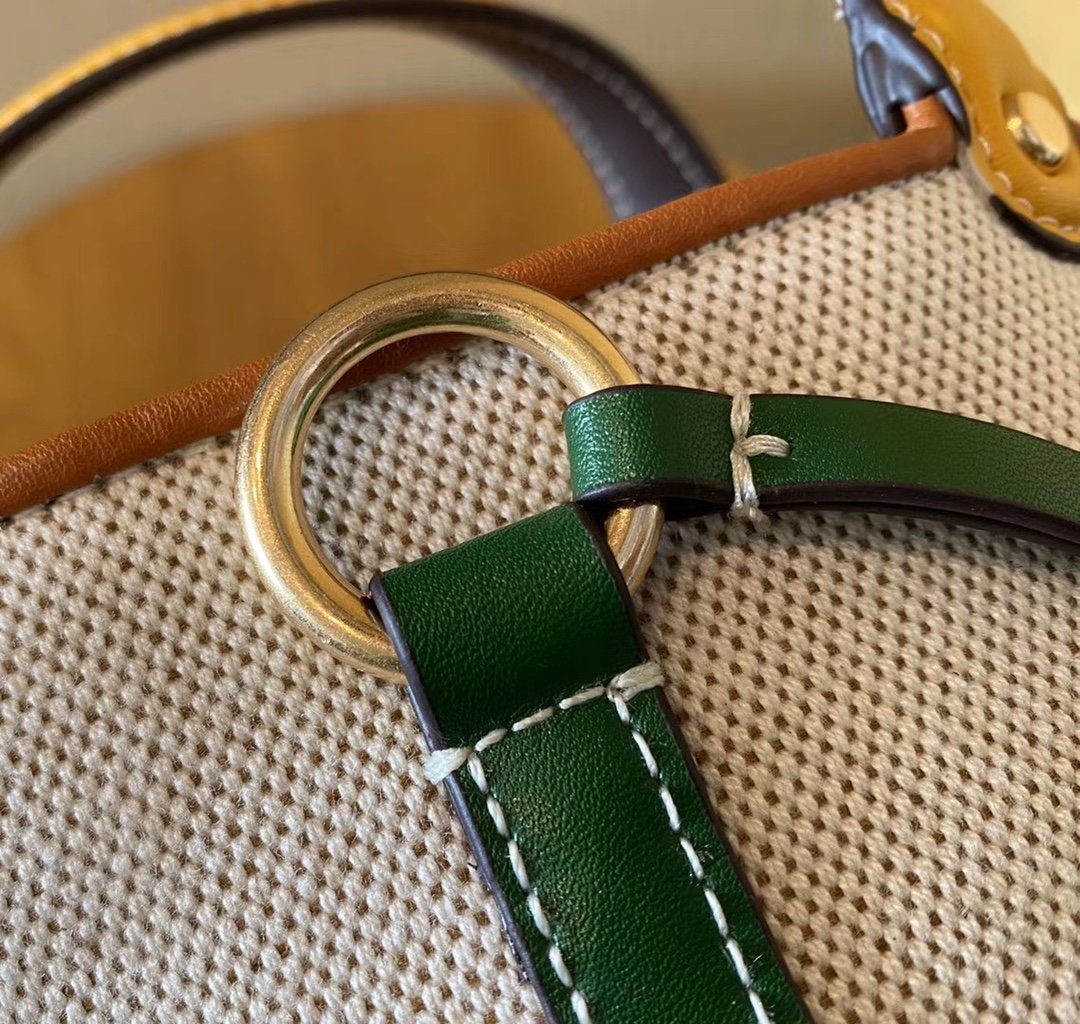 Textured linen + nappa calfskin, vintage hardware