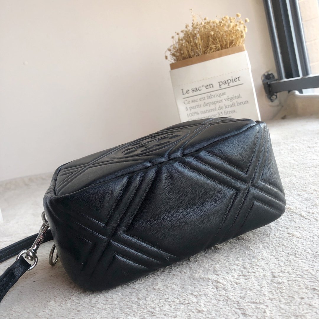 TB’s latest embossed diamond camera bag. Imported sheepskin material. The embossed diamond embossed pattern is matched with the iconic classic double Tlogo, which is fashionable and versatile. Double zipper divider, very convenient and practical. One slip pocket at the rear with magnetic closure, convenient and functional! It is a very practical small square bag, a popular classic style that will not go out of style. The upper body is simple and atmospheric. Suitable for different age groups! The delicate and soft lambskin feels very soft and shiny. The long shoulder strap is adjustable and detachable, so you can wear it on one shoulder! Support inspection! Size: 18*13*8