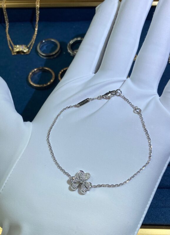 The metal used in pieces of jewelry are often a lustrous yellow or white gold, which is expertly polished to a mirror-like finish. The precious stones are carefully selected by our masters and set in a precise manner, showing off their color, clarity, and brilliance to their full potential.