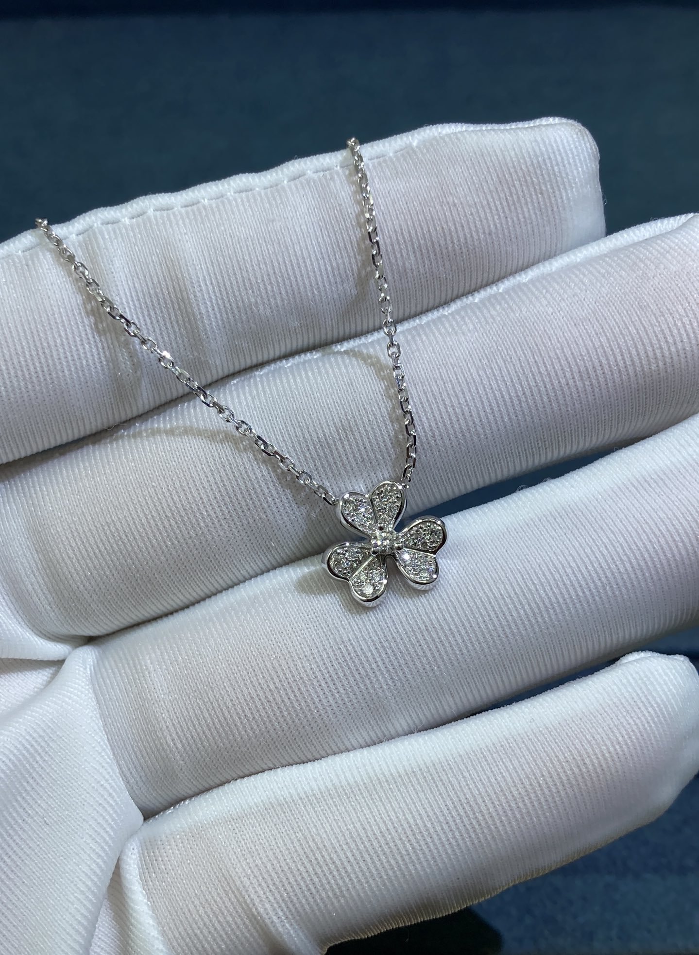 Van Cleef &Arpel Triple Flower Necklace, White Gold