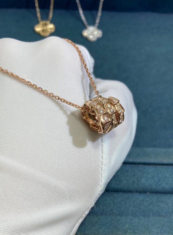 Bvlgari Triple Hoop Diamond Snake Necklace, Rose Gold