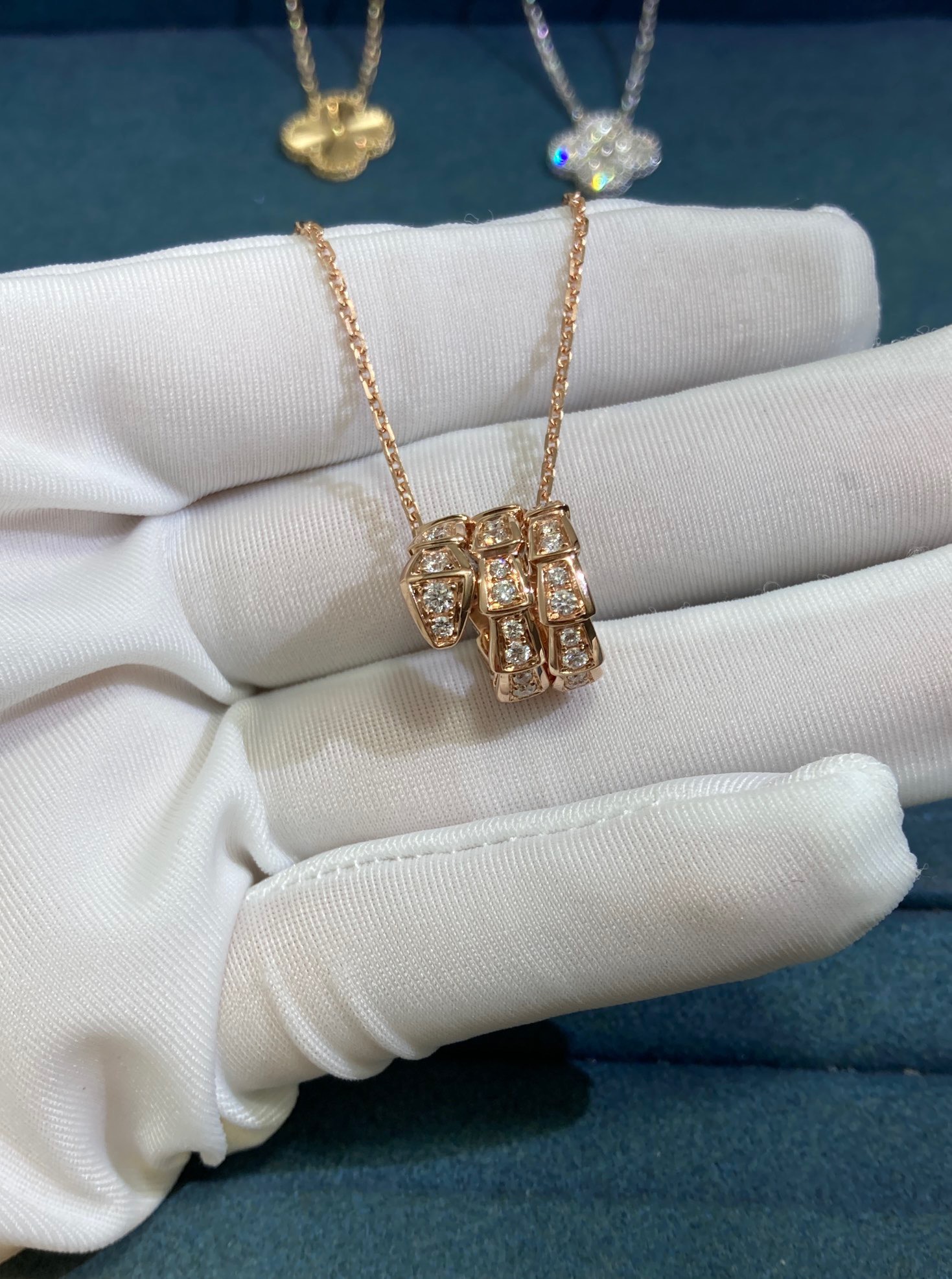 Bvlgari Triple Hoop Diamond Snake Necklace, Rose Gold
