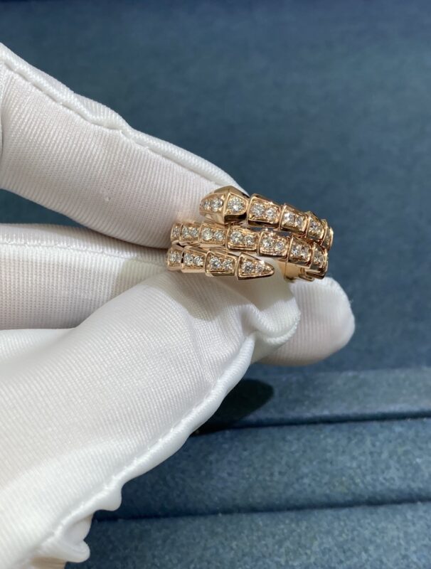 Bvlgary's Triple Hoop Diamond Snake Ring, Rose Gold