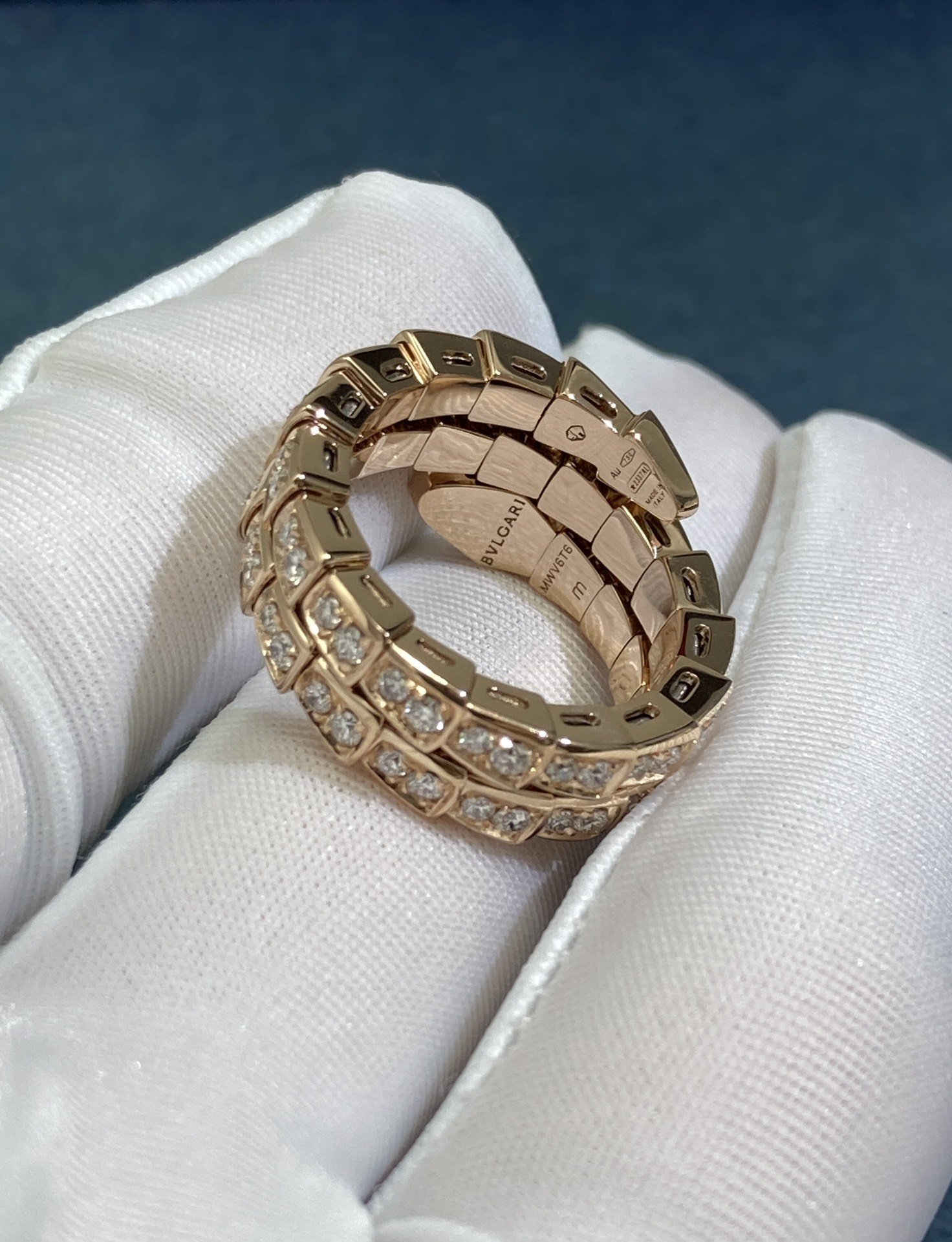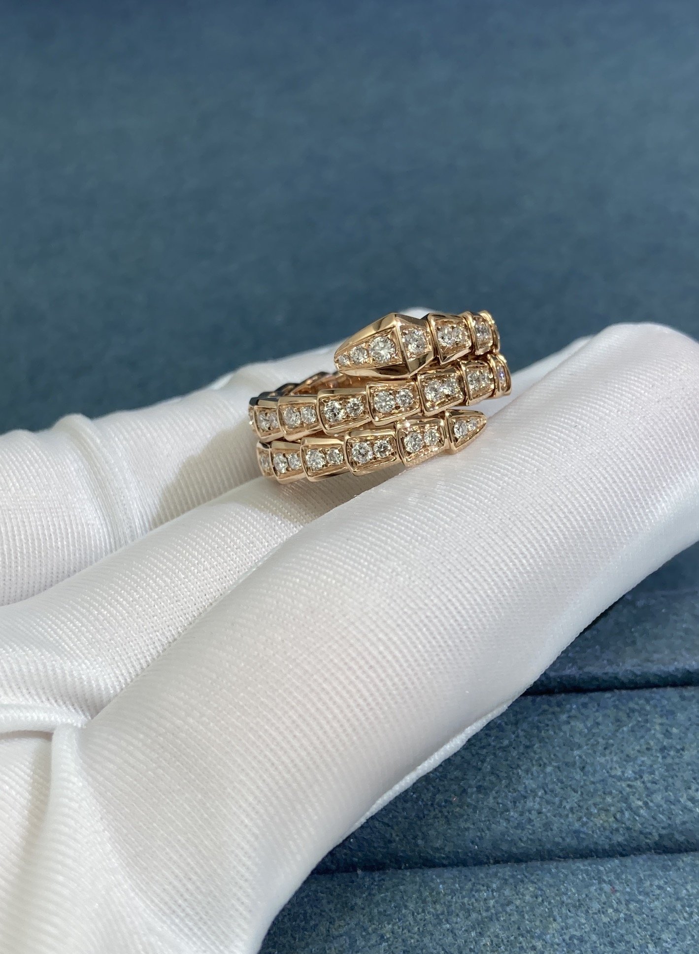 Bvlgary's Triple Hoop Diamond Snake Ring, Rose Gold