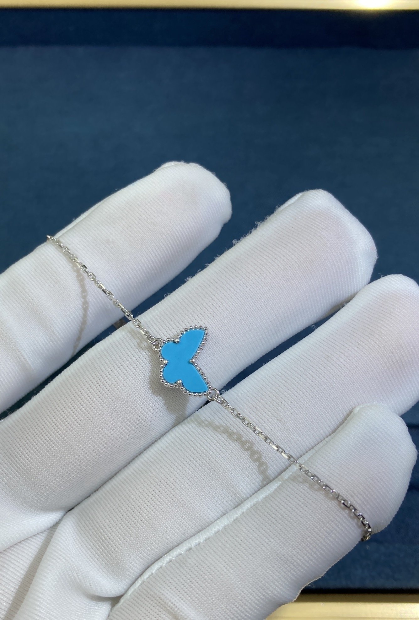 Turquoise Butterfly Bracelet, White Gold