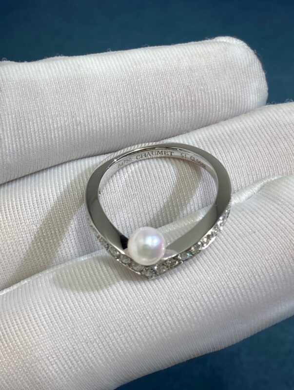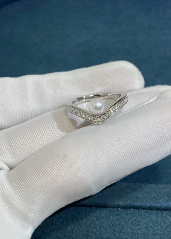 Chaumet V-shaped Pearl Ring, White Gold