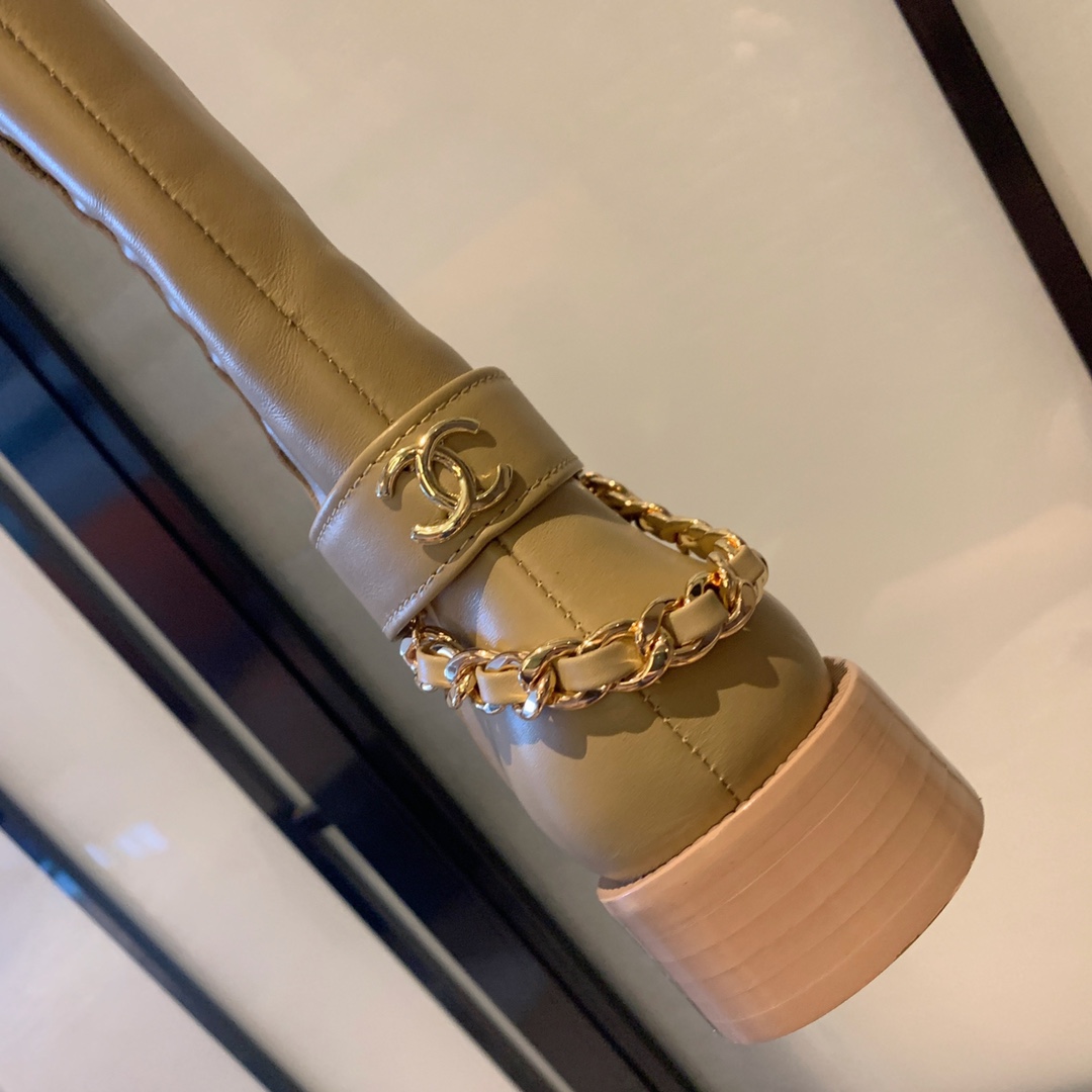 【Chan*l】Chain boots. The heel chain ⛓️ is paired with double C metal logo, which is crisp, handsome, comfortable and playful inspiration. Material: cowhide upper, sheepskin lining and feet. High-density thickened cowhide sole with a heel height of 3.5cm Number of yards: 35-40 (40 customized non-refundable
