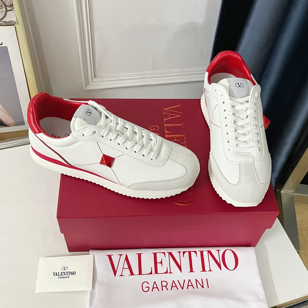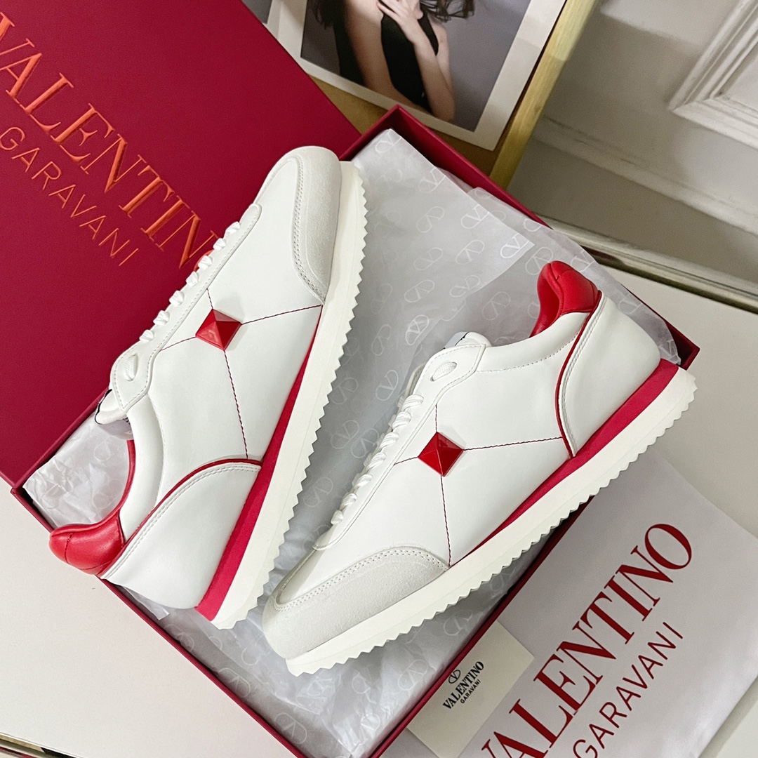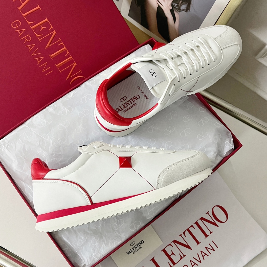 Valentino Valentino V’s latest Stud Around series couple models casual rivet sneakers Original purchase, development, and production. This Valentino Garavani Stud Around series has a new design, with matte finish on the side, oversized rivets, same-color rivets and stitches, and the aura is fully open, releasing infinite charm. Exquisite packaging at the delivery counterππ¦ β Fabric: Original custom imported top layer cowhide β Lining: Original imported breathable mesh lining β Sole: Original molded wear-resistant velvet + rubber outsole β Bottom thickness: 3CM β Size: 35-40 for women, 38-46 for men