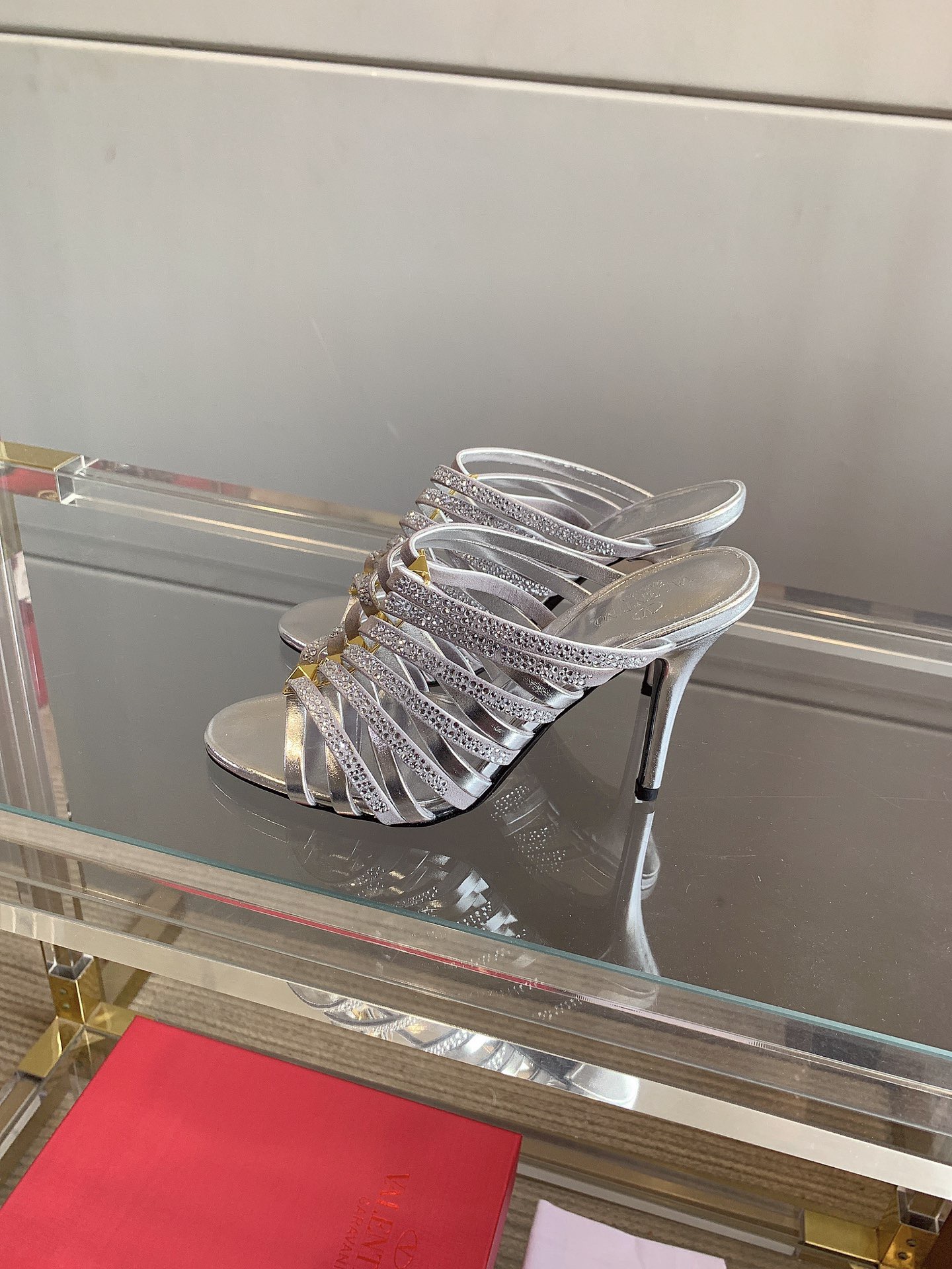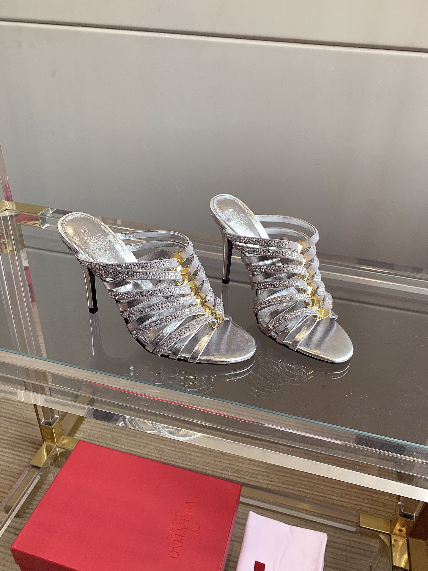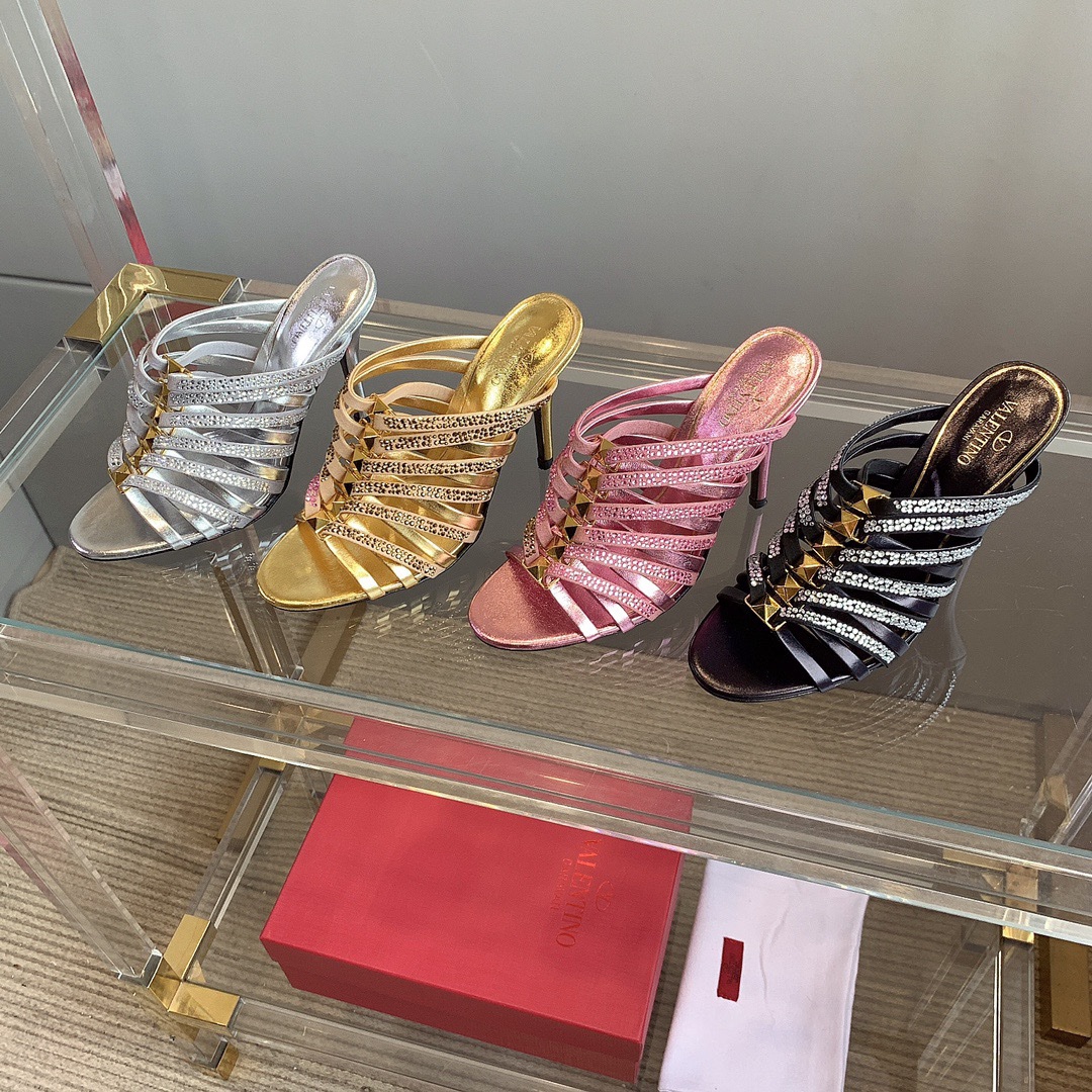 Valentino New High-heeled Slippers for summer, small rhinestones embellished with bling bling, sparkling smartly.