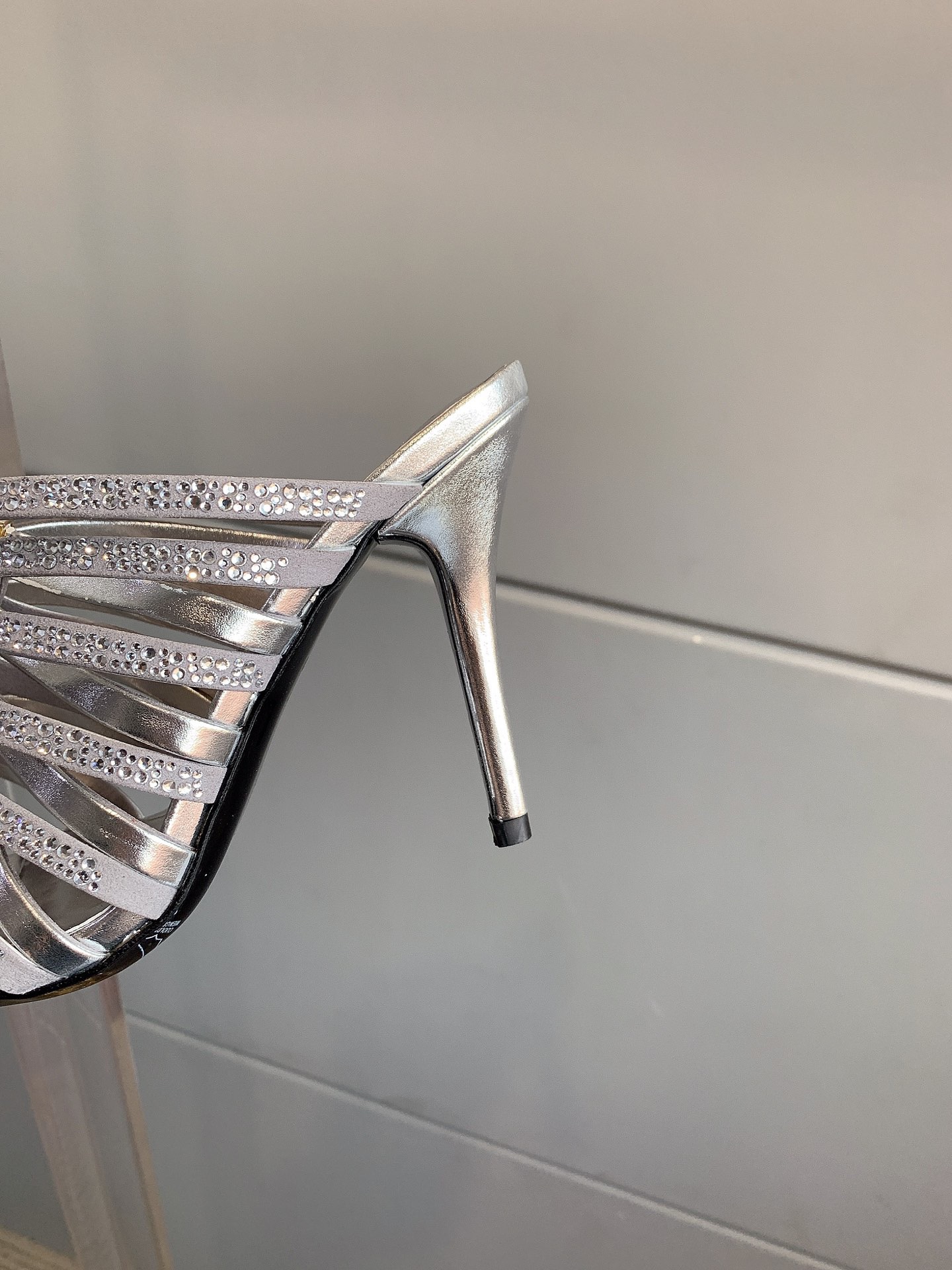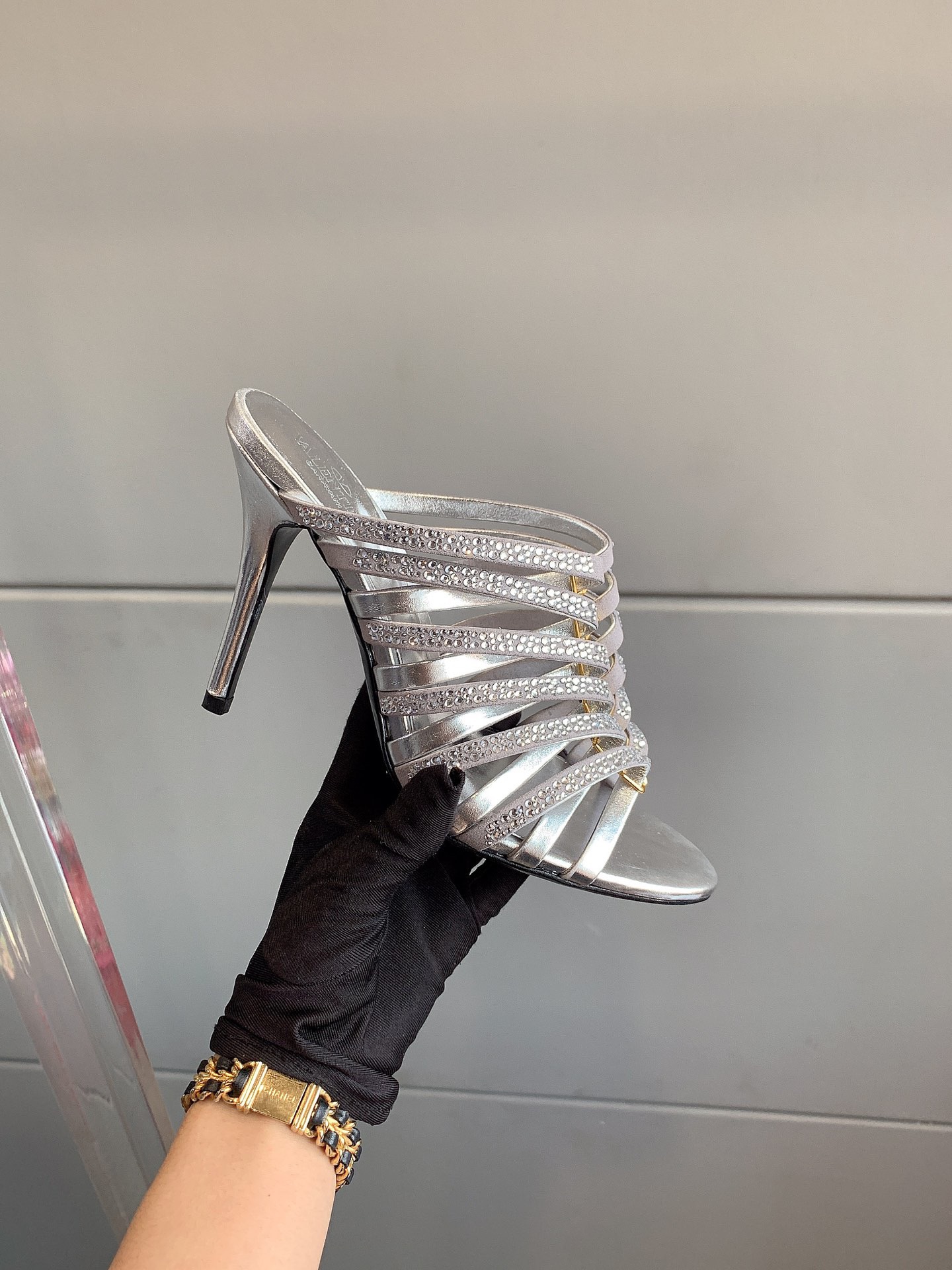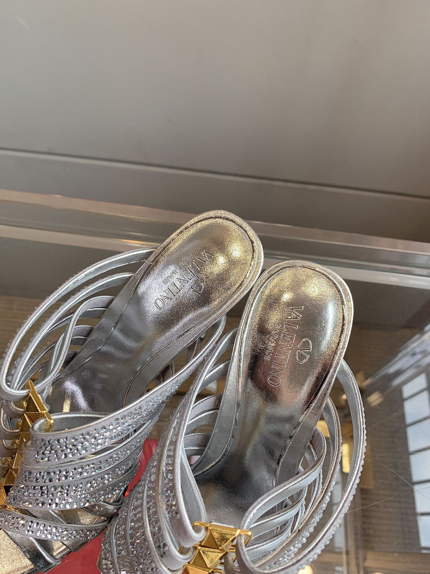 Valentino New High-heeled Slippers for summer, small rhinestones embellished with bling bling, sparkling smartly.