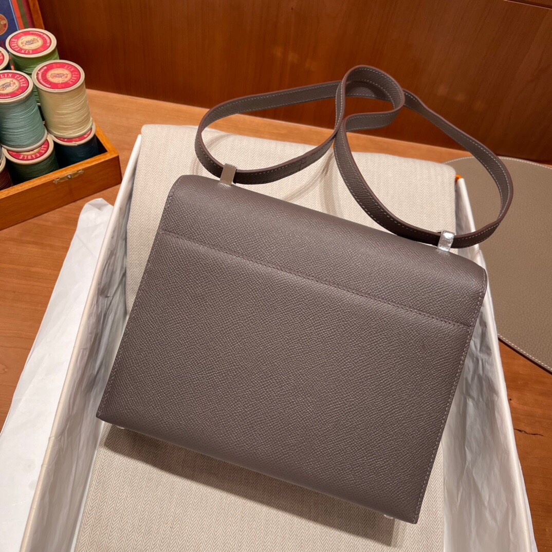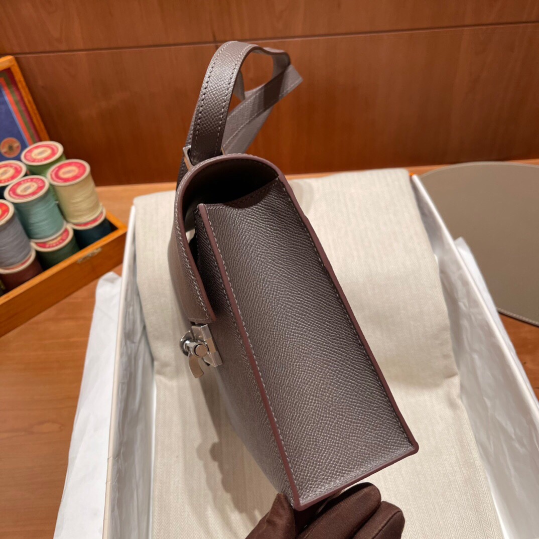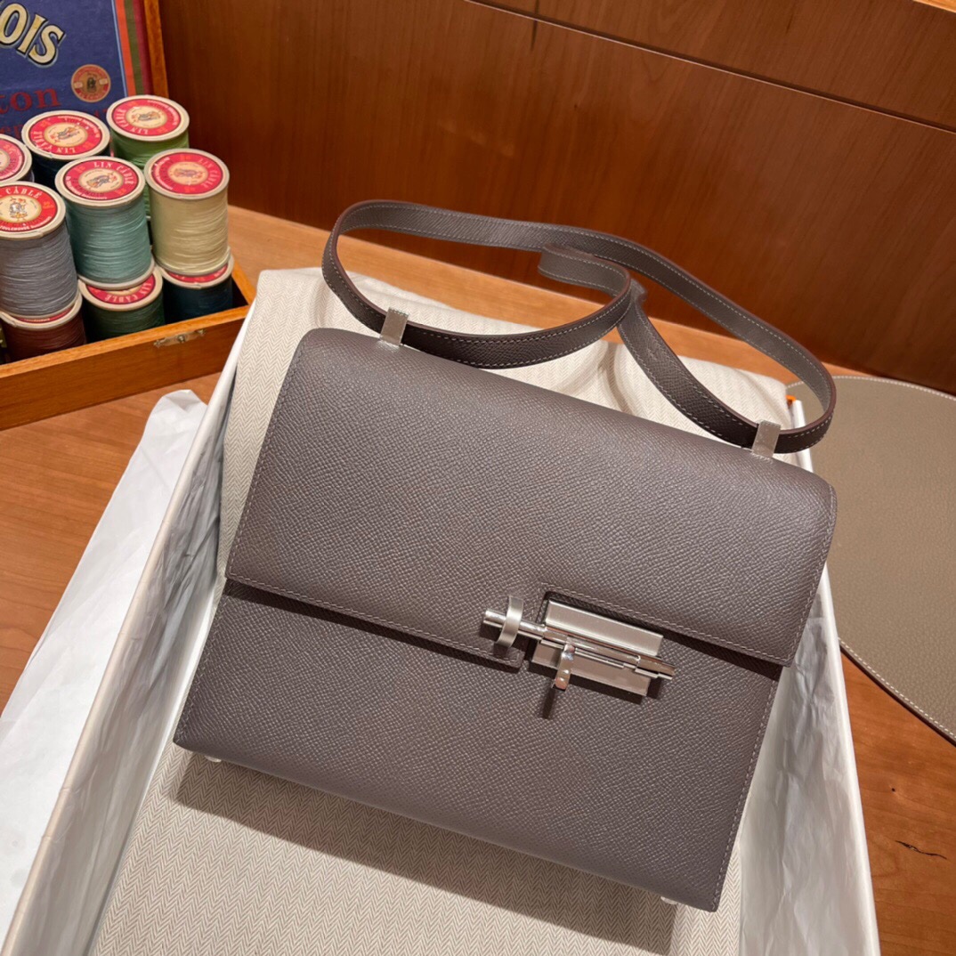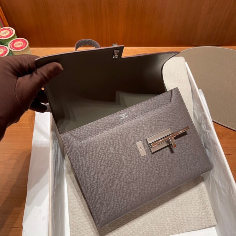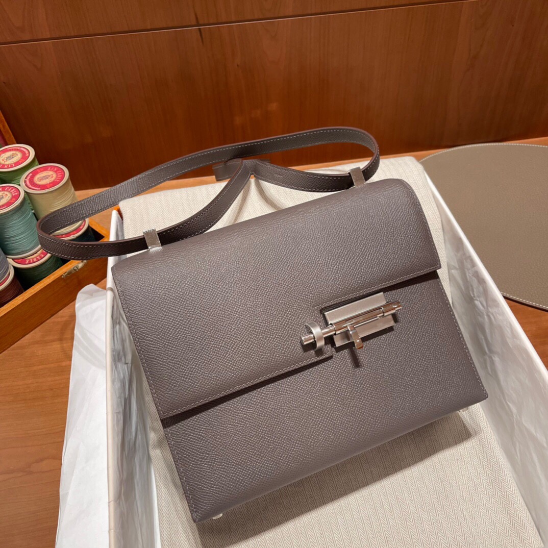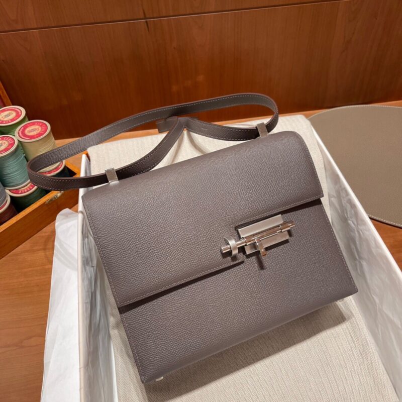 Verrou 21cm Pistol Bag/Lock Bag Epsom Leather 8F Pewter Gray Etain