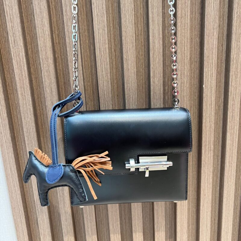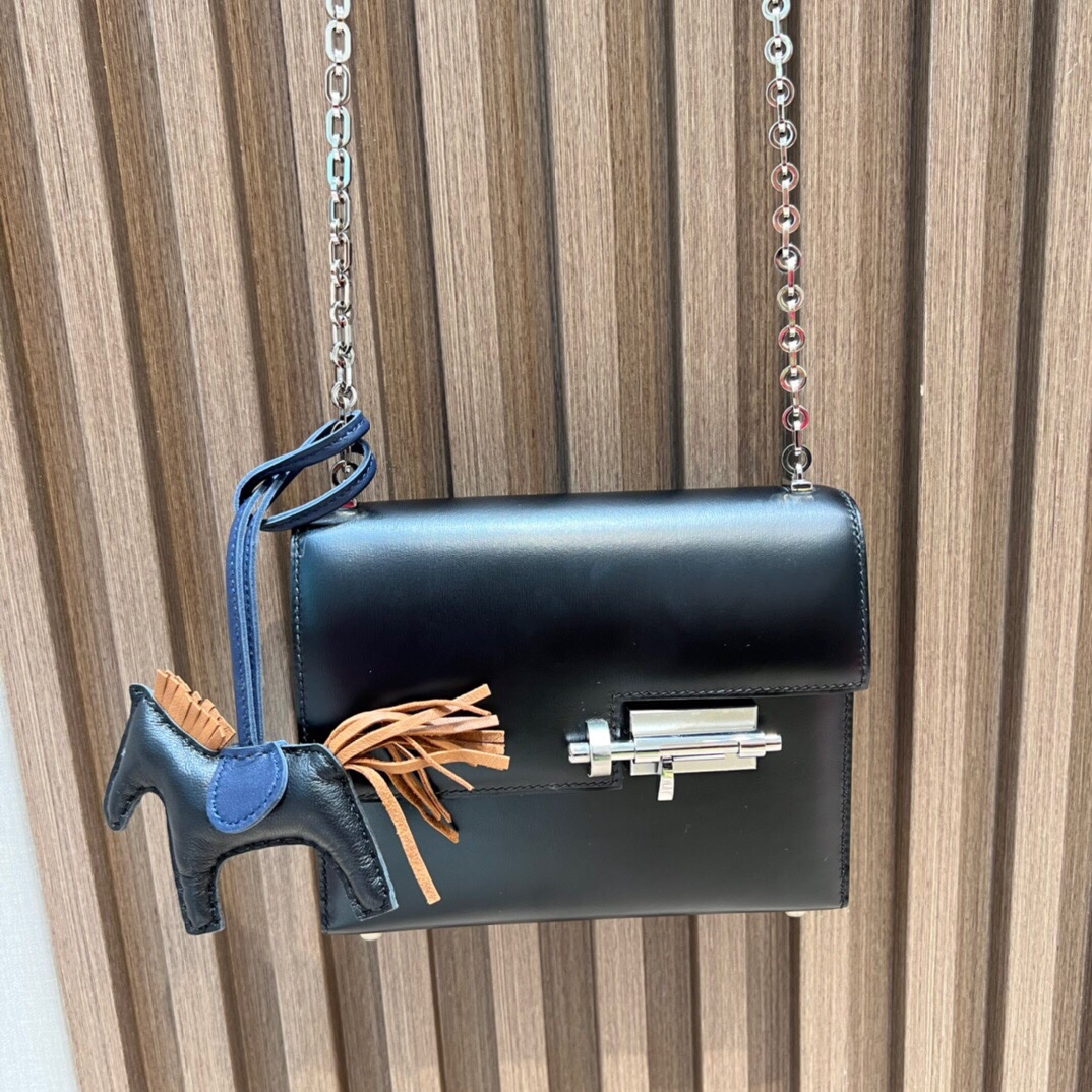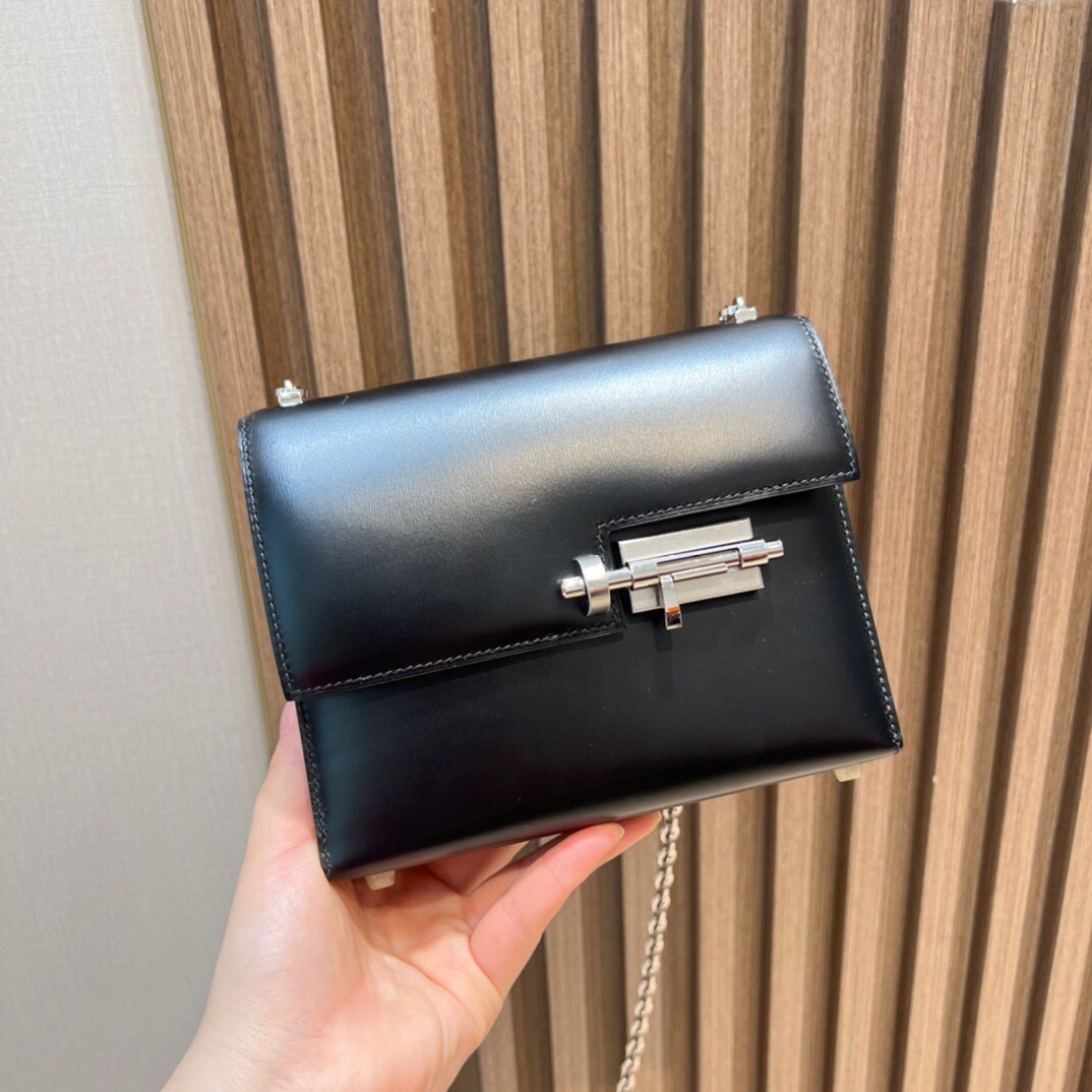 Verrou mini latch bag/pistol bag box leather black silver buckle